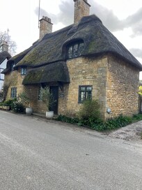 Here's a chance to stay in a chocolate box English thatched cottage that's full of character, history, space and light. Most rooms have dual aspect views, the surrounding area is verdant with mellow sloping hills, golden Cotswold stone houses and lovely sheep to appreciate. The house is light with a private fenced garden. There's parking too! Oh and you can leave your car at the cottage and just walk to the pub!