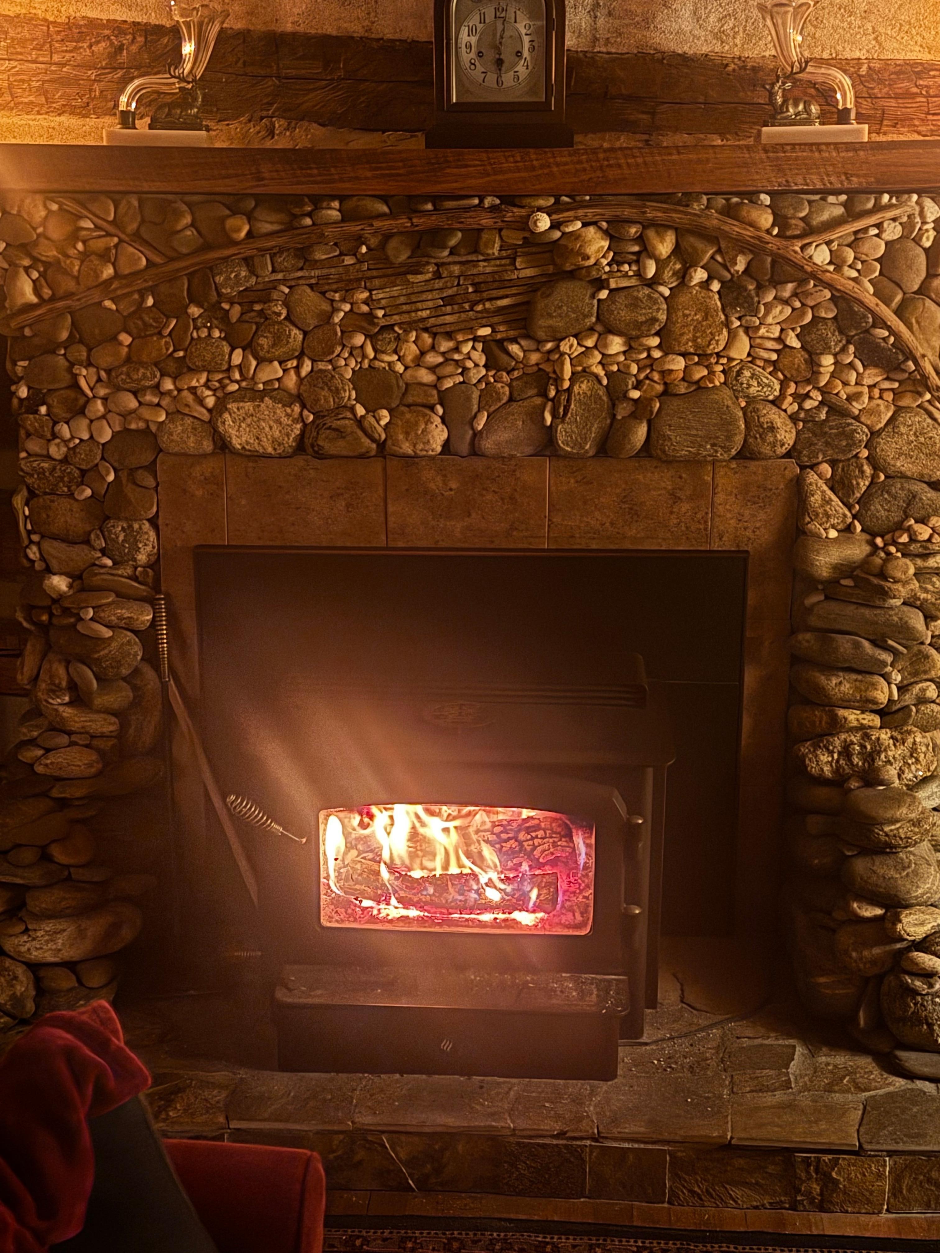 The living room features a vaulted ceiling, hardwood floors, and a custom fireplace made from locally sourced river rock. Enjoy the new 58 inch flat screen TV while you relax by the cozy wood burning stove, or step into the fully equipped kitchen, complete with granite counter tops, recessed LED lighting and everything you need to prepare a meal.