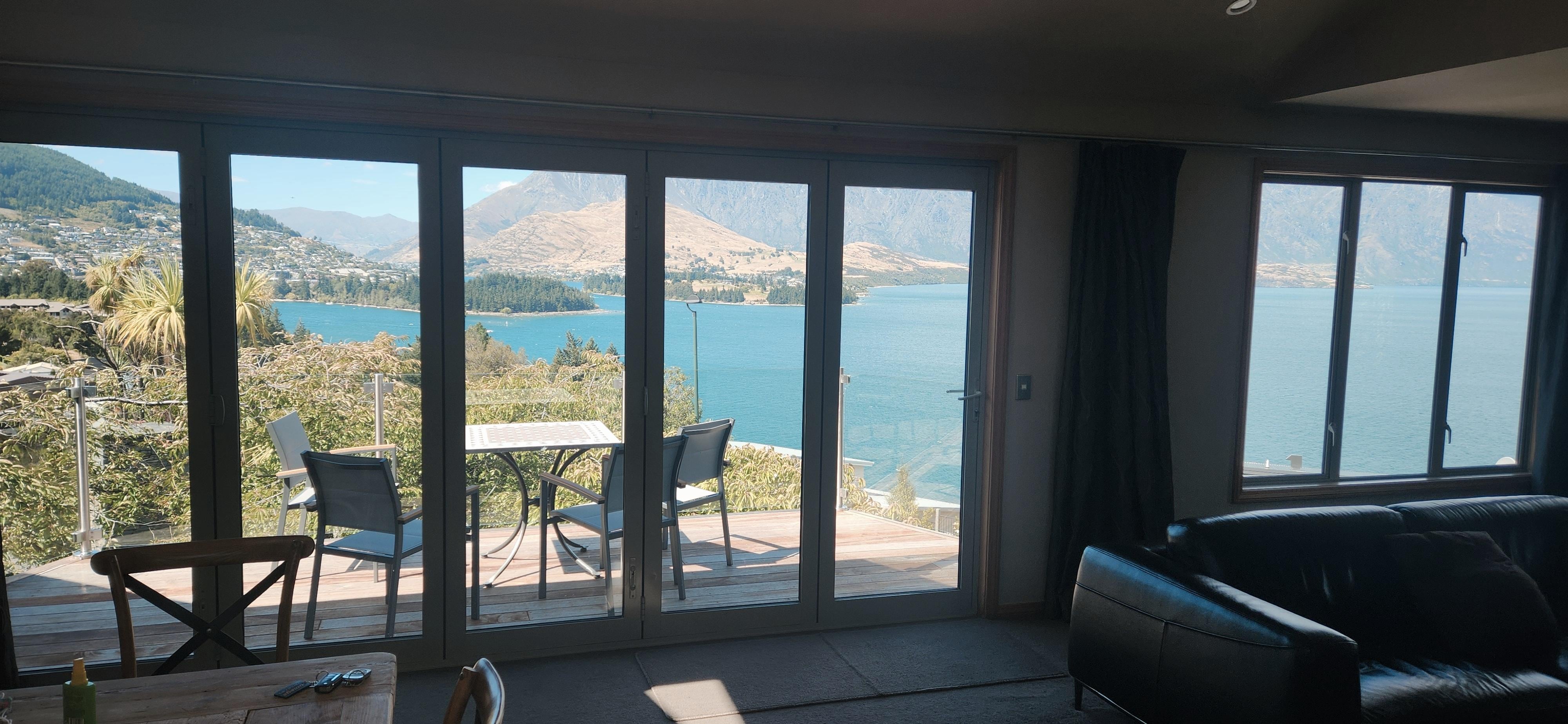 Enjoy the spectacular vistas of the Remarkables and Lake Wakitipu to Queenstown Gardens from all living areas in this house, located in the exclusive and quiet area of Aspen Grove. At night you can sit by the fire, and gaze upon the lights of Queenstown and the bay, or take in the stunning scenery from the hot tub located in a private garden setting. A gourmet kitchen, part of the main living and dining area, allows the chef to enjoy the company and conversation whilst still enjoying the stunning views which make Queenstown the premier tourist destination in New Zealand. Each bedroom is equipped for privacy and luxury, two have ensuites, and the other two share a separate bathroom complete with private spa bath. All bathrooms are fitted with under floor heating and warming towel rails for your comfort. All bedrooms have a flat screen television, or you may choose to enjoy television viewing from the separate entertainment lounge located upstairs. Free wi-fi internet connection (unlimited) is included. Go outside to the beautiful gardens and you will discover a private barbecue/entertainment area - complete with views to Cecil Peak and a private hot tub spa. The house is conveniently located - twenty minutes walk or ten dollars in a taxi will take you to the centre of Queenstown's action and night life. Superb restaurants, casinos, night clubs, shopping and tourist facilities are at your fingertips. Located only 500 metres up the hill, you will find a terrific little restaurant, take away and convenience store.
