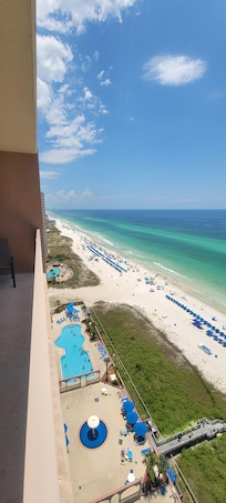Directly overlooking the Gulf of Mexico, enjoy the spectacular views of the Emerald Gulf and sugar-white sand beach from the spacious 20th-floor balcony, accessible from both the Living Room and Master Bedroom. The views truly are nothing short of remarkable, and the sunsets will take your breath away! Furnished with coastal dƩcor and light colors throughout, our condo will put you in relaxation mode from the time you enter the front door.