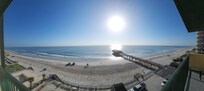 Enjoy a spectacular view of the Atlantic Ocean from your private balcony on the 7th floor of the Sunglow Beach Resort in Daytona Beach Shores! Sit back with your cup of coffee and enjoy the sounds of the waves breaking. The Sunglow Resort is located directly on Daytona Beach. This unit is directly ocean front. Wake up in the morning and take a relaxing walk on the beach. Spend the day swimming in the pool, relax in the hot tub or go fishing on Crabby Joe's pier, right next door.