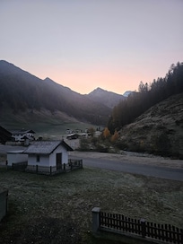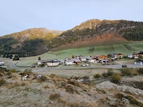 Schmirn, 1450 m above sea level. The holiday apartment is located on a farm, on an enclosed garden plot with a meadow, bordered by a fence. Quiet. Mountain view and green location. Access is directly from the main road (paved). In winter, snow chains are recommended. Parking on the property.