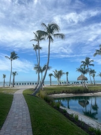 steps to the beach and pool