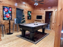 We booked a cabin for the week and specifically to play pool at the cabin. Prior to booking, we contacted the host to relay our interest in pool table specifically & confirm table was fully functioning & level. We were told that it was.The condition may be acceptable for guests who rarely play pool, but not for those who play regularly & booked based on this amenity. The pool table is not full size nor was it level. It is also positioned too close to the wall, making it impossible to shoot properly on all sides. Short pool sticks were provided for the sides near wall, but the tips on those sticks were in very poor condition. Had the actual conditions been accurately represented, we would not have rented this cabin. That said, the cabin itself was extremely clean. For us, the hot tub and seated arcade game were the best features of the property and were well maintained. The deck felt fairly private due to the cabin’s elevated position on the hill. However, the location is very close to the main road, and road noise was noticeable.The couch in the living room was just okay; we were able to get comfortable by bringing pillows from the bedroom. The bed was fairly comfortable. The kitchen was average, adequately stocked for a weekend stay. While there were several positives, the inaccurate representation of a key amenity was very disappointing and significantly impacted our experience.