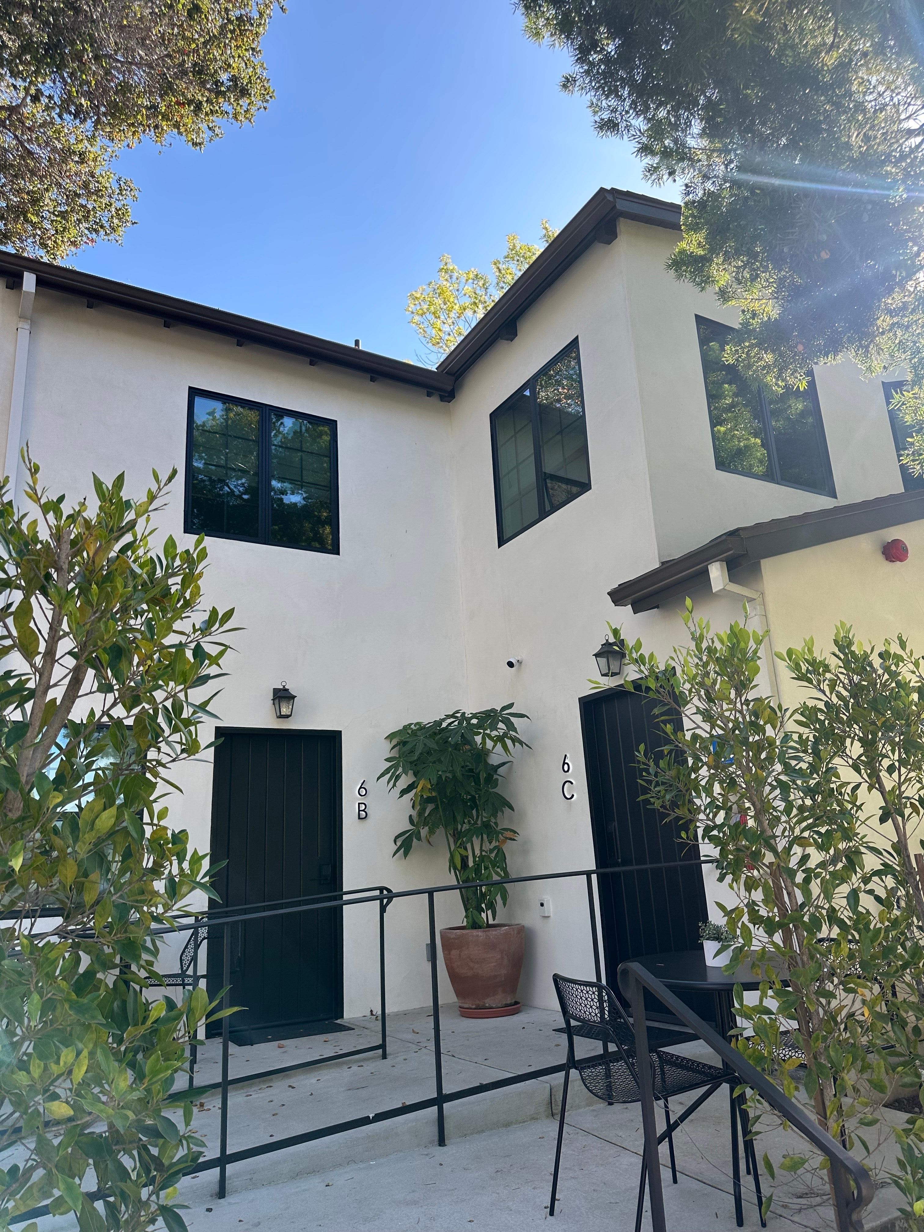 Immaculately renovated modern downstairs efficiency studio, one door down from State Street. Enjoy the Samsung split cooling and heating system for ultimate comfort. Includes a flat-screen smart TV with streaming, casting, or Airplay features. A private bath with a rain shower, kitchenette with Nespresso, microwave, mini fridge, and a patio with bistro set complete this uniquely appointed stay in Santa Barbara. *In an effort to support sustainable tourism and reduce our carbon footprint, we provide Public Goods toiletries, compostable sponges, trash bags, and green cleaning products.*