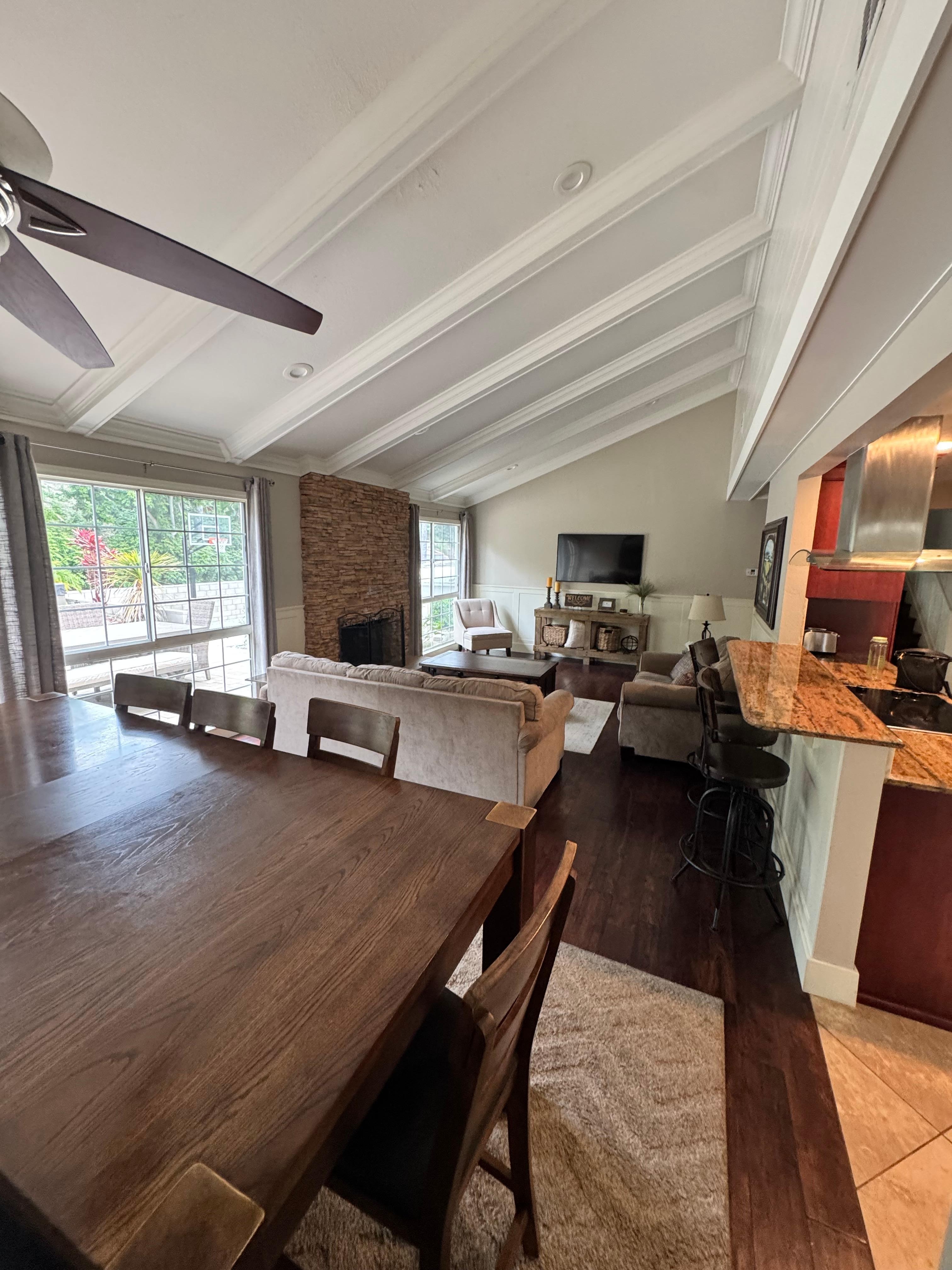 This property was fantastic for my family of 6 - me, husband, and 4 kids. Each of the 3 bedrooms were large rooms that had a comfy bed with luxurious, soft linens plus a TV with various streaming services available. There are 2 separate living spaces each with a couch and TV. The kitchen had everything we needed for daily meals - plus the grill outside was great for us to host other family members for a dinner cookout. The backyard area was great for entertaining after the cookout with the putting green, basketball hoop, relaxed seating to hang out and talk, and a fabulous Jacuzzi spa. The house was immaculately clean and had everything you would need. Grocery shopping, restaurants, fast food, gas, anything you might need was conveniently located nearby. It was very easy to get on the interstate and be at the beach, Disneyland, mountains/canyons, or other popular vacation spots within 30 minutes or less. It was good knowing we had such a great, relaxing place to come home to at the end of a long day at Disneyland, Catalina Island, or other places. Our host, Darleen, was very responsive to any questions we had and very helpful to us both before and during our stay. I have already recommended this house to friends and family and would happily stay here again.