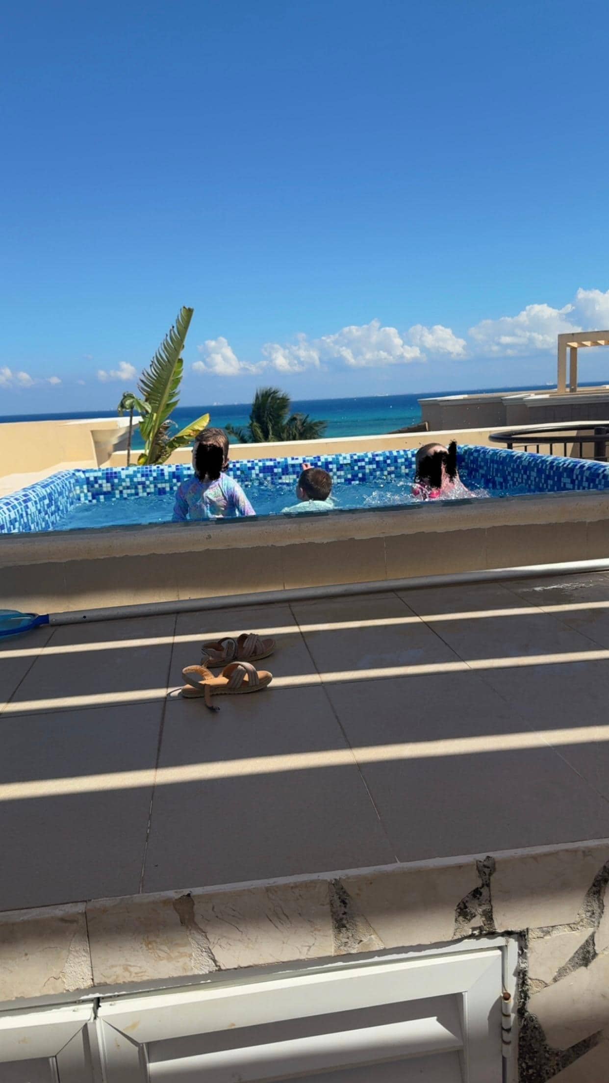 Take the stairs to the top penthouse floor where you have access to a private pool, lounge chairs for basking in the sun, or for peace and quite while you gaze out over the ocean. The 3rd bathroom is located here, on the penthouse level. There is also a propane grill and dining area to enjoy outdoor meals.
