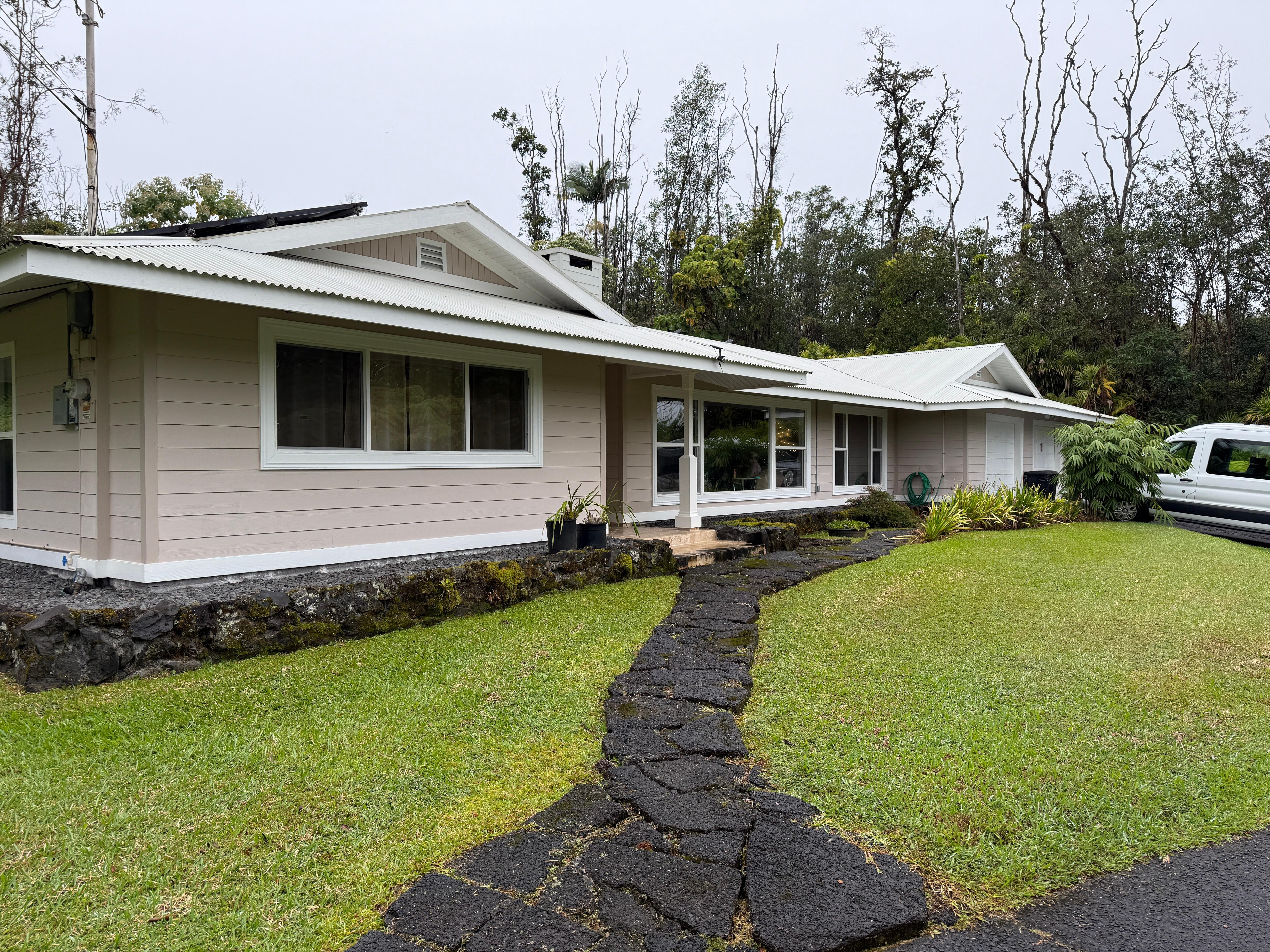 Spacious house surrounded by anthuriums, lush " old growth" Ohia trees and other exotic ferns, palms and rare plants. 15 minutes from Rainbow Falls and the hospital. 20 minutes to downtown. 30 minutes to the airport and beaches. 40 minutes to the Volcano. Lots of private parking. Quiet, secure with locked outside gate, fresh forest air, pure Hawaiian (County) water. Be serenaded by the calls of the Coqui frogs at night and chirping of birds in the morning. Fast internet. Great for families, remote work groups and retreats.