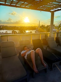 • The new stairs lead up to the 3nd floor patio, rooftop pool 4th Bathroomand outdoor kitchen area. The rooftop offers spectacular 360 views of the island and new privet rooftop area. Enjoy the Caribbean sun and breeze under our new pergola. This is truly an awesome spot to unwind with friendsandfamily. The house was built on one on the highest spots on the island, which always provides constant, awesome, ocean tropical breeze. The view from the roof are spectacular. Sun rise and sun set.