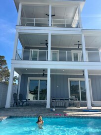 The beach access is a short walk. The house is private, secluded and designed for a perfect beach vacation. Game room keeps everyone entertained.