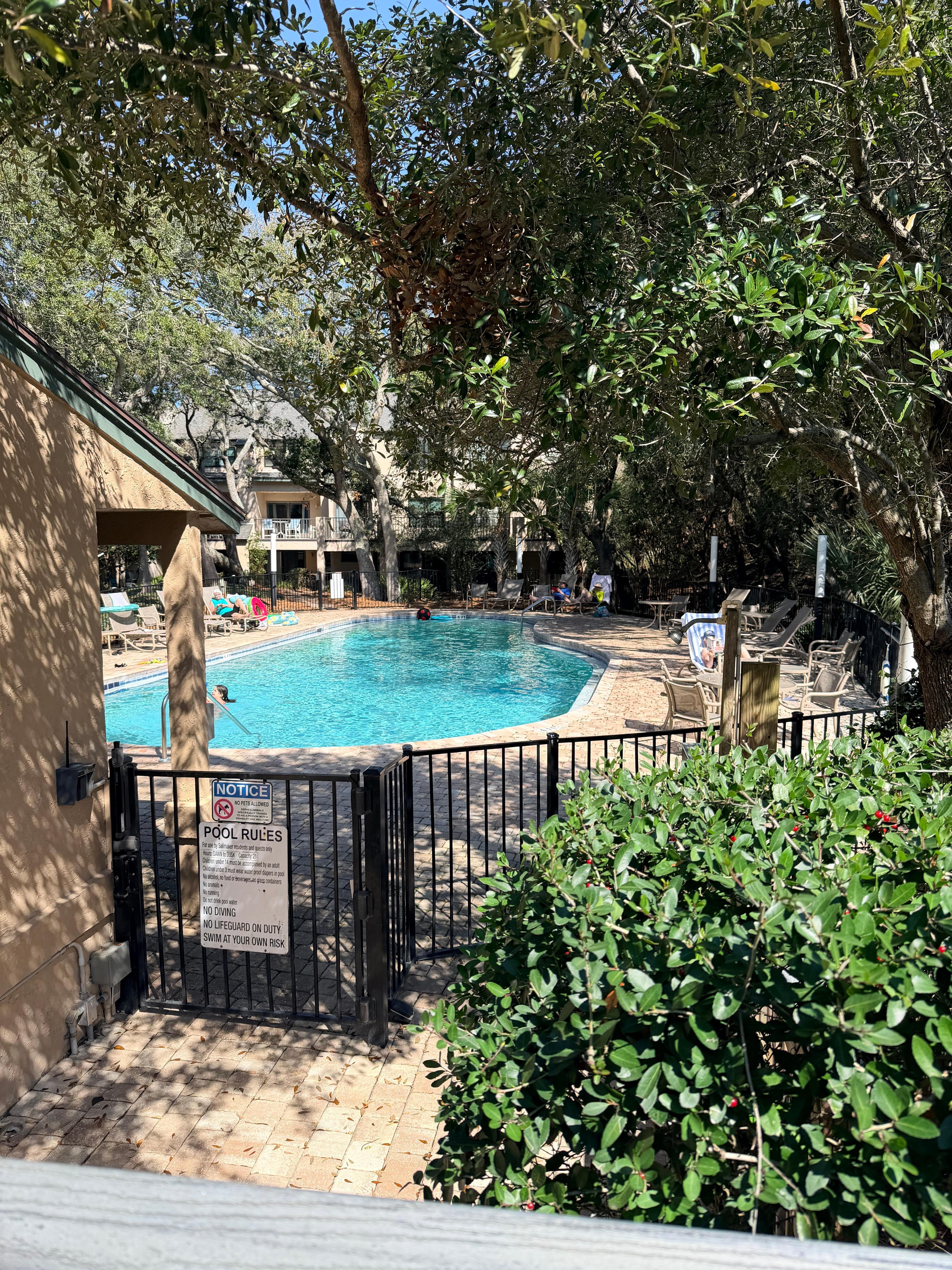 Great property with the perfect location. Less than a 5 minute walk from door to shore. Path for the entire trip. Pool is literally feet from sliding back door. But the place was quiet with beautiful trees for shade. Beach itself was not crowded at all. We had a great time.