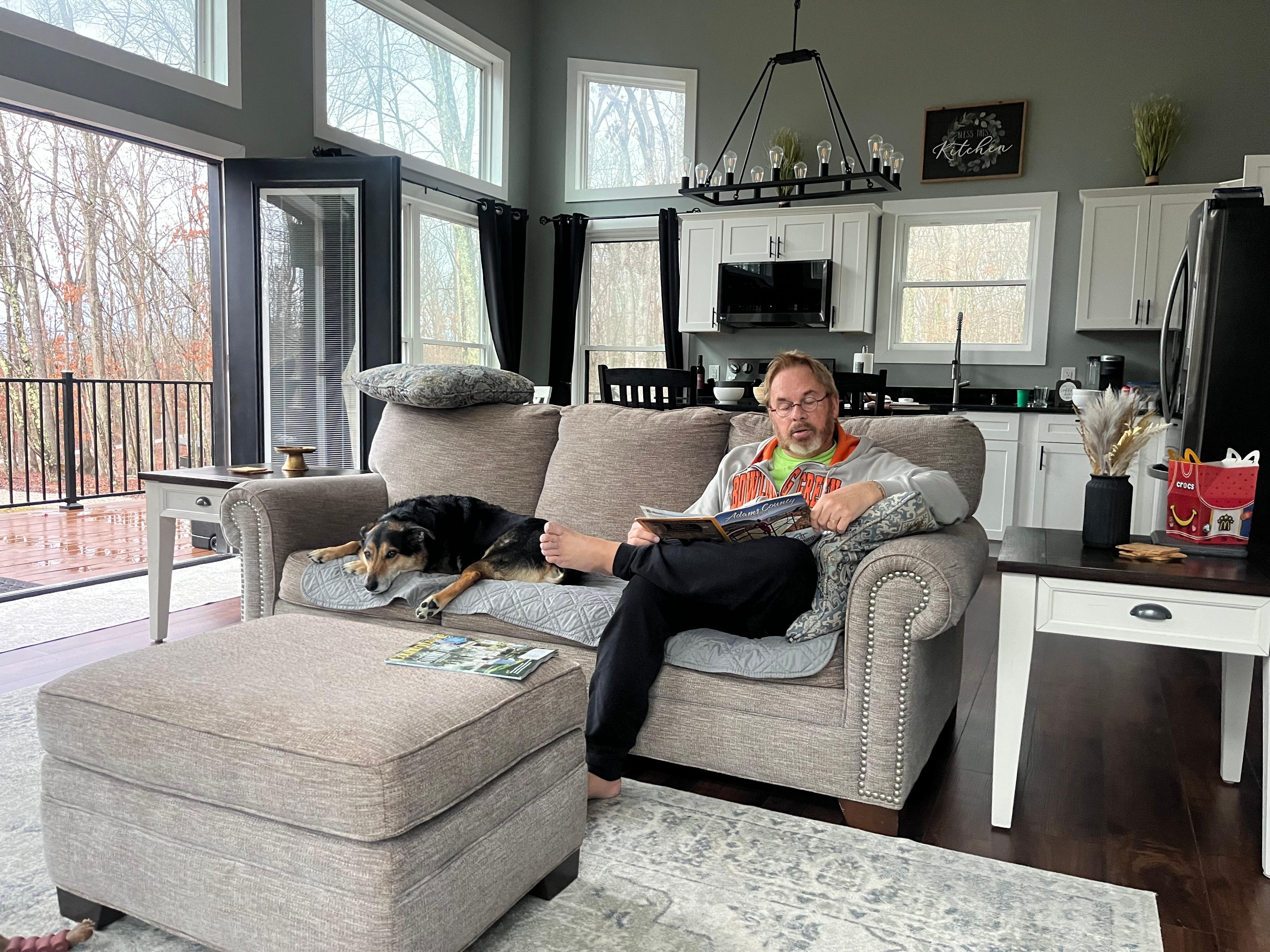 Built specifically for couples looking to have a romantic, private get away . NEW LARGE HOT TUB ,led lights with water fall . This cabin is located in Amish country , on a very sought after gravel road located in adams county OH . This is truly a hard to find setting . A person might see 3-4 cars in a 24 hour period . stunning view from front porch, Fire pit and wood provided . Literally all you need is yourself and food . Everything else is provided . There is no Wi-Fi or cable . This location is too remote for these , however a smart tv and plenty of dvds are provided . Great cell service on the property . One bedroom with a queen bed , and pull out sofa bed if you decide to bring the kids along . Everything you need to have a quiet stay with your loved one . My wife and I are sure you will love the cabin or we will refund some or all your money . We will guarantee you are 100% satisfied . There are no tricks here . Book with confidence!! Thanks for looking .!! No shedding dogs!!!