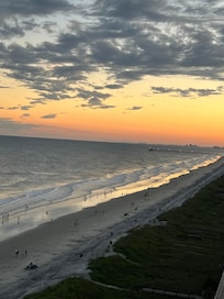 Located in the well-appointed Sunrise Pointe building at Cherry Grove Beach, situated on the quiet section of North Myrtle Beach, with a beach front that expands for miles. Laminate floors through out makes it very clean with a rustic feel. The moment you walk into the Unit you will see and smell the Ocean and know that you can relax in the beautiful surroundings of a beach home. Located on the 10th Floor we offer views that will take your breath away. The balcony is fully furnished to enjoy morning coffee or evening drinks. The principle bedroom has a King bed and a spectacular view of the ocean. It directly walks out to the balcony. The ensuite has double sinks and walk in shower. Each Bedroom has a flat screen TV and access to a bathroom with a tub/shower combination. The Kitchen is well equipped to eat in if you enjoy cooking. There are a lot of great eating places in the area if you want the night off. The kitchen has all the appliances you will need.... Keurig, Coffee maker, coffee grinder, toaster oven, slow cooker, toaster, tea kettle, microwave, ice-maker, blender, hand mixer. We offer linens for your stay all you need is your beach towels, chairs and toys...Don't forget a sun umbrella as it can get very hot in the summer. A washer and dryer will allow you to refresh your towels through out your stay. An iron and ironing board is also available. You won't need to pack the hair dryer. The unit has Wi-Fi and cable with Flat screen TV's in each room.