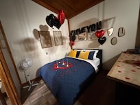 Our property is only 400 sq ft... We like to say the perfect size for 2 people. I really like that you are in the "woods" but within 3 minutes you can grab something you forgot from town or have an unforgettable meal and adult beverages at The Brown Lantern or The 406.