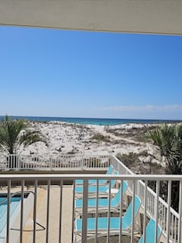 This magnificent 3-bedroom Gulf Dunes condominium is spacious enough for a family of 8-10. The large, open floor plan is centered around the amazing view. Large picture windows and sliding doors provide the view of the beach and natural seascape. Step out to your own private oceanfront balcony that also adjoins the master bedroom. From time to time, you will be in the perfect spot on your balcony to enjoy some live music from the neighboring outdoor grill.