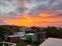 It shares 5 sitting areas spread over 3 decks overlooking Culebra’s beautiful harbor. Views are from the decks up the stairs from the living area.