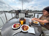 No boat, that's okay, fish right off the dock, then clean and cook your fresh catch on the grill provided.