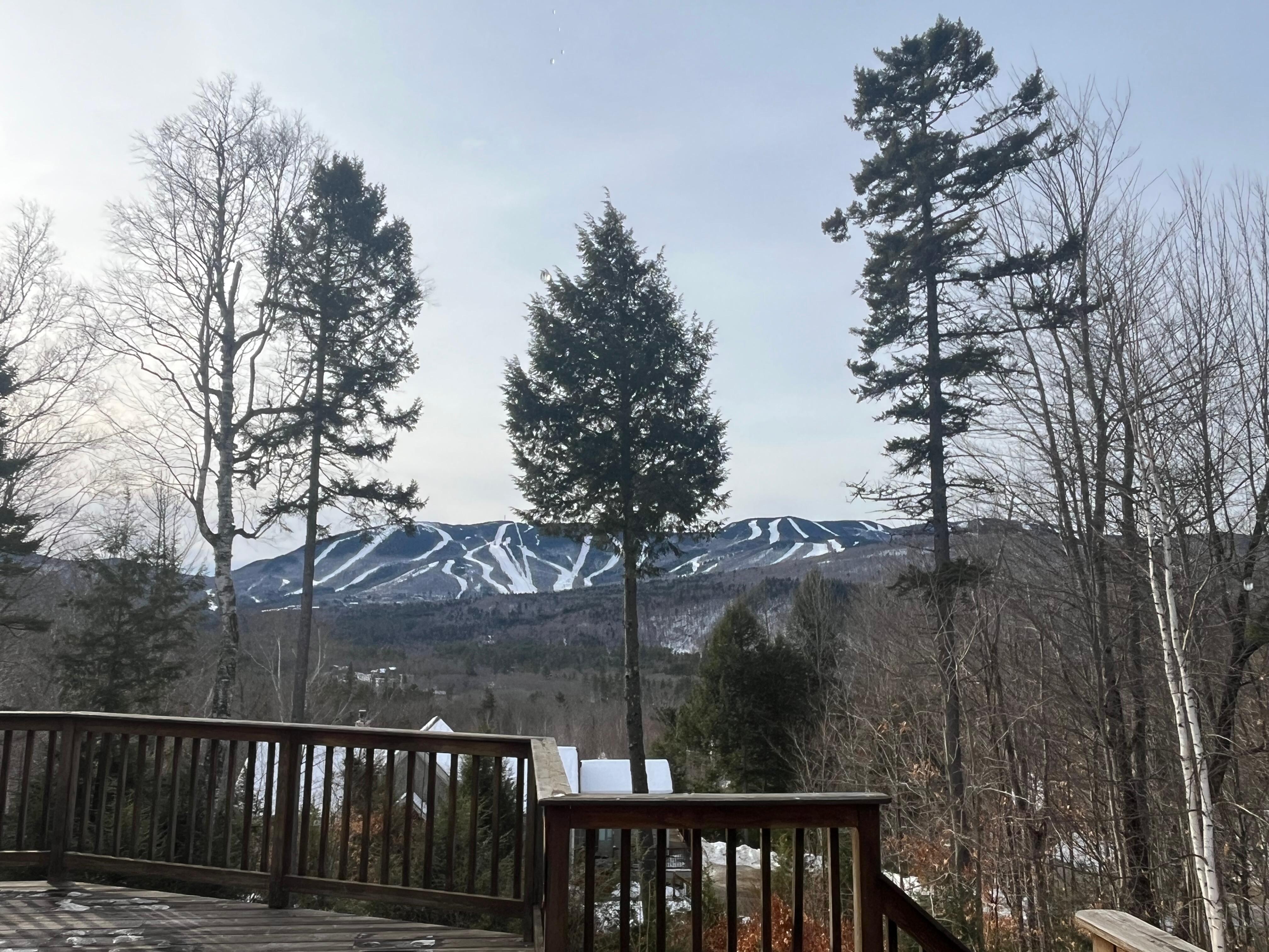 As you approach our chalet, you'll be greeted by the serene beauty of the surrounding trees. The chalet's exterior is charming and inviting, with a spacious deck that offers stunning views of the lush forest and the slopes of Sunday River. Whether you're enjoying a cup of coffee in the morning or winding down with a glass of wine in the evening, the deck is the perfect spot to soak in the natural beauty that surrounds you.