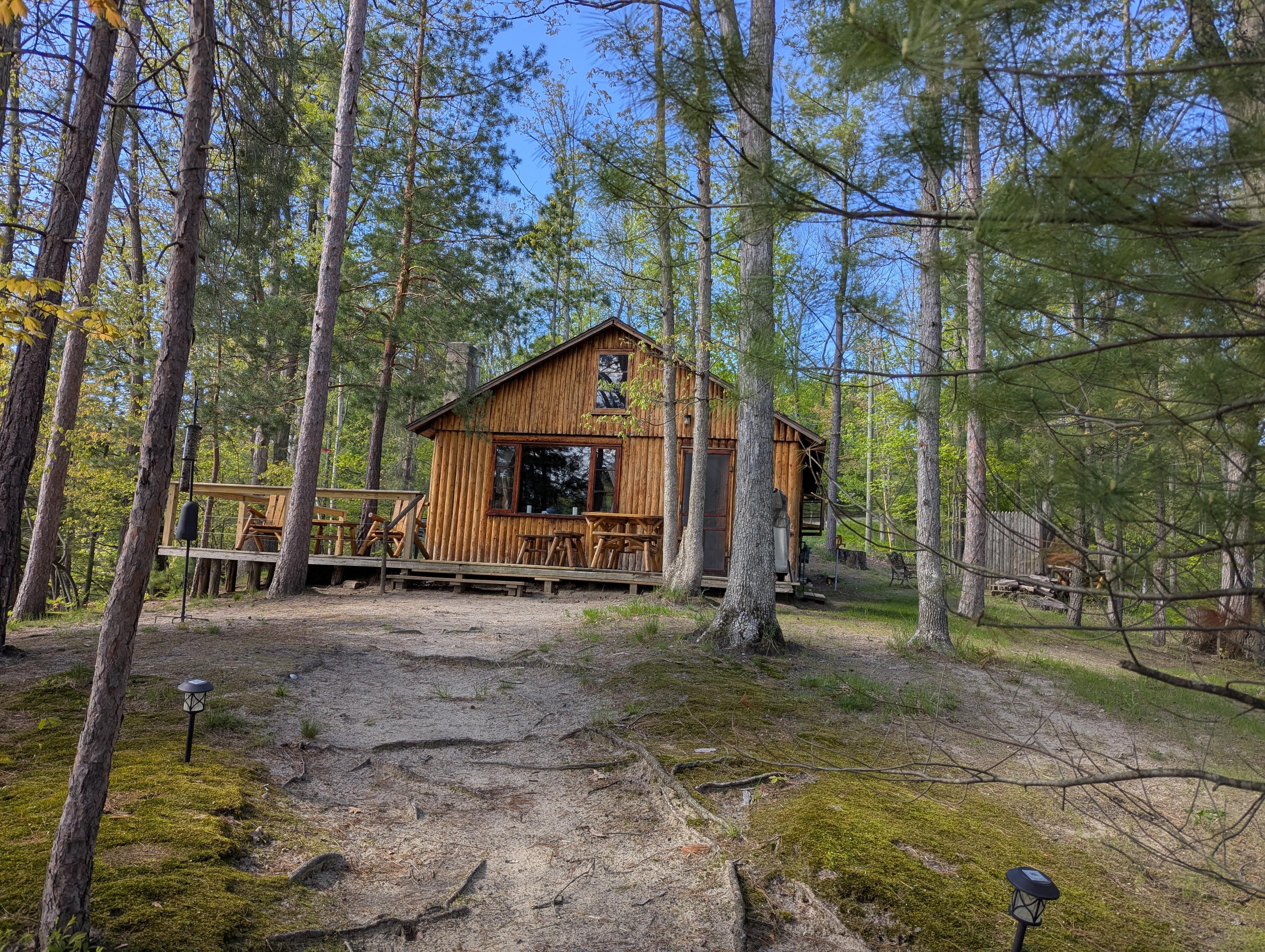 The Cabin is a special place. It is a unique combination of a rustic log cabin and a modern furnished home, on a beautiful piece of property near a busy Traverse City. Please do not expect to be staying at the Grand Traverse Resort, or the Holiday Inn. The Cabin definitely has its own character. Not all the windows have screens, the driveway is not paved, and the chipmunks will join you during your morning coffee. But give the Cabin a few days, and I think you will feel what I feel, and you may be a little disappointed that time is going by so quickly. Enjoy it while you're there.