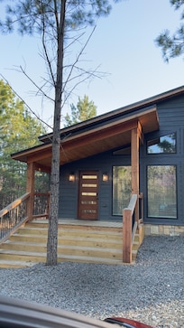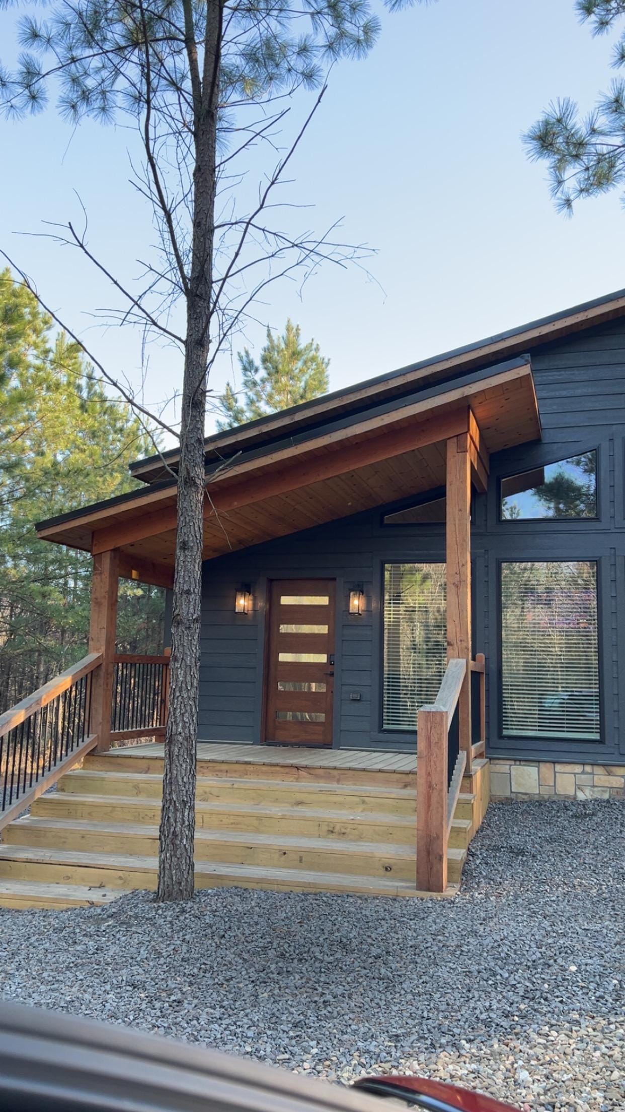 ✔ Sprawling deck overlooking pine trees