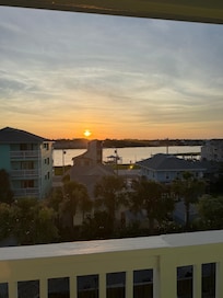 Access the private deck through two sets of sliding doors: one from the living room and one from the primary bedroom (go to and fro without disturbing the group). The top floor view gives you a front row seat to both beautiful sunrises and lovely night skies, with enough space and seating for your entire party.