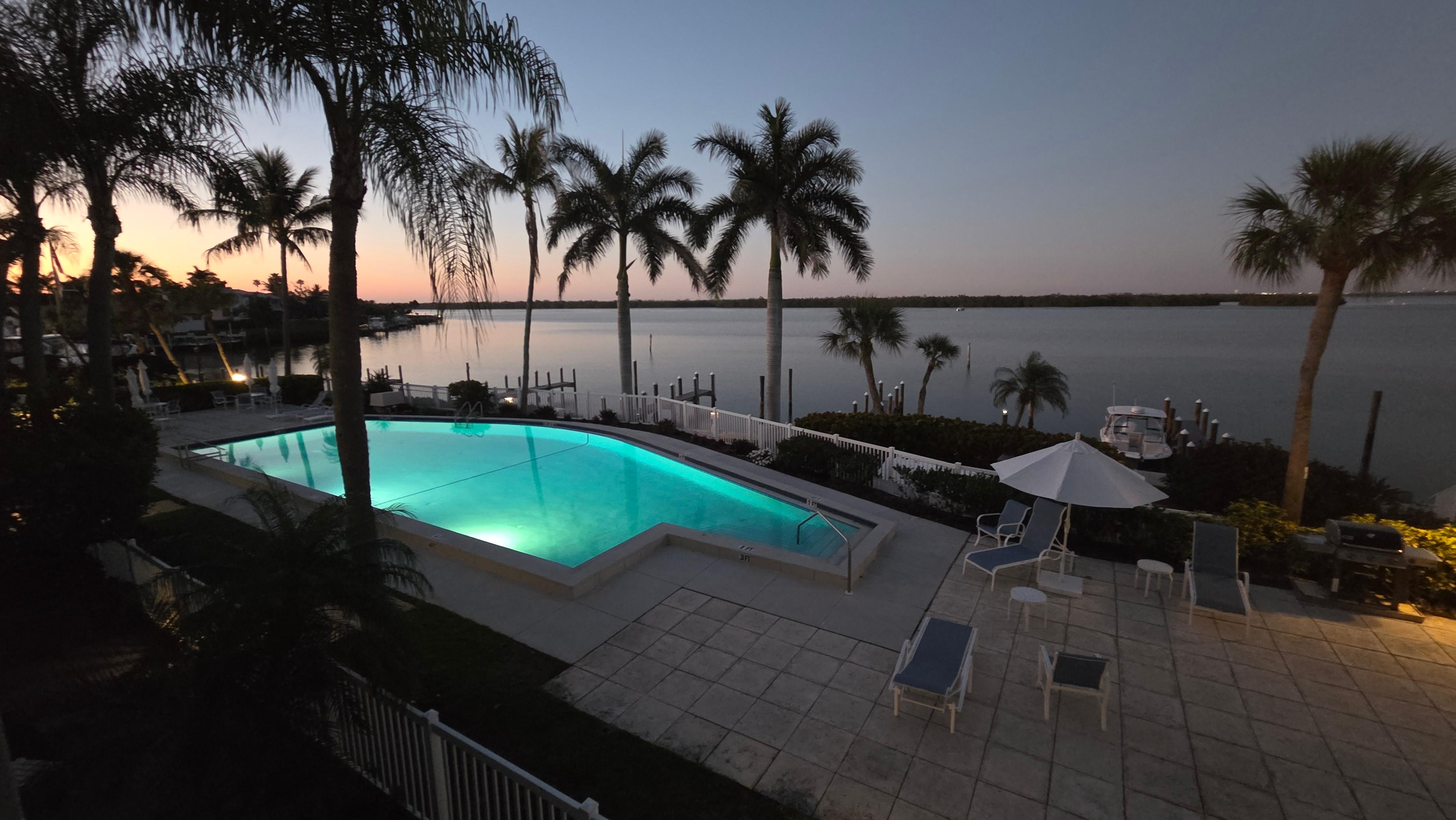 We spent a month here and loved every moment. It was located on the 1st floor right off the pool. At 1st, that concerned us, but we quickly realized the convenience of being on the 1st floor. The double sliders kept any pool noise outside, but honestly, there was never a problem with noise. The view overlooking the pool and the Intra-coastal waterway was fantastic watching the boats traveling north and south. Parking was right outside the front door and the recently updated pickleball and tennis courts were perfect. The unit was recently updated and was beautifully decorated and had everything we could possibly need (including plenty of coffee). Our host was always responsive to our questions and needs. We paid a premium price for the unit because we booked it late, but it was worth every penny and we expect to be coming back next year. We could not have been happier with our experience.