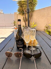 The outdoor space in our villa is pretty special, with various places for plenty of sunbeds and tables and chairs. The villa is south facing so you can literally catch the sun from sunrise to sunset!
