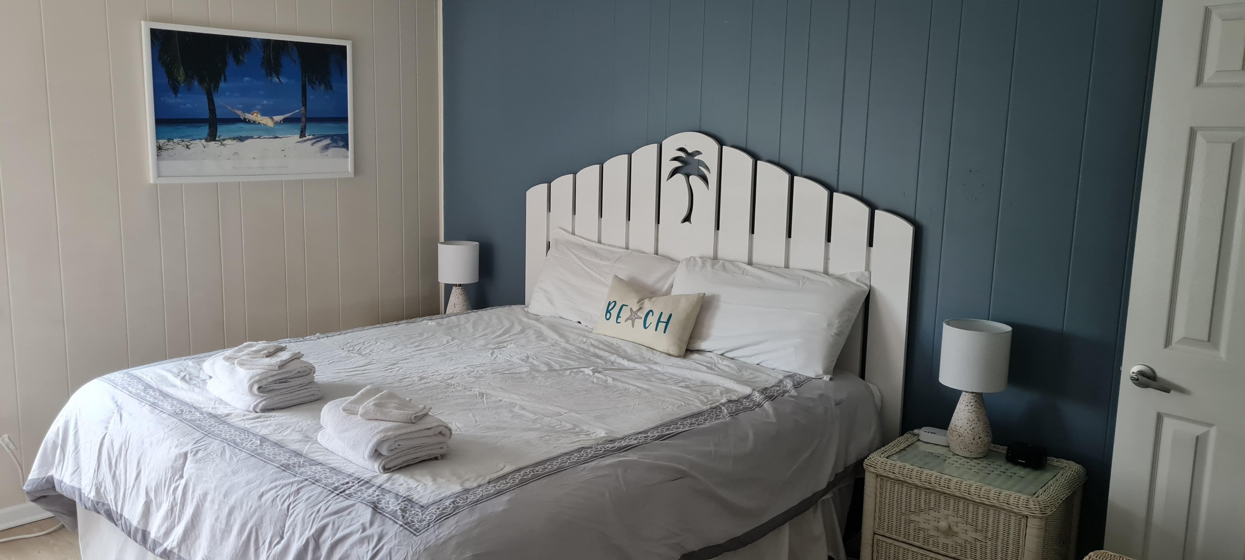 Nicely decorated 2 bedroom apartment literally steps from the beach. Victoria was very responsive to any questions or concerns that I had. Would recommend staying here for your vaccination