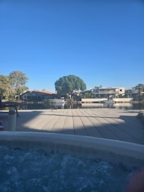OUTDOOR LIVING: Waterfront sun deck, dock, hot tub, cushioned patio furniture, hammock, gas grill