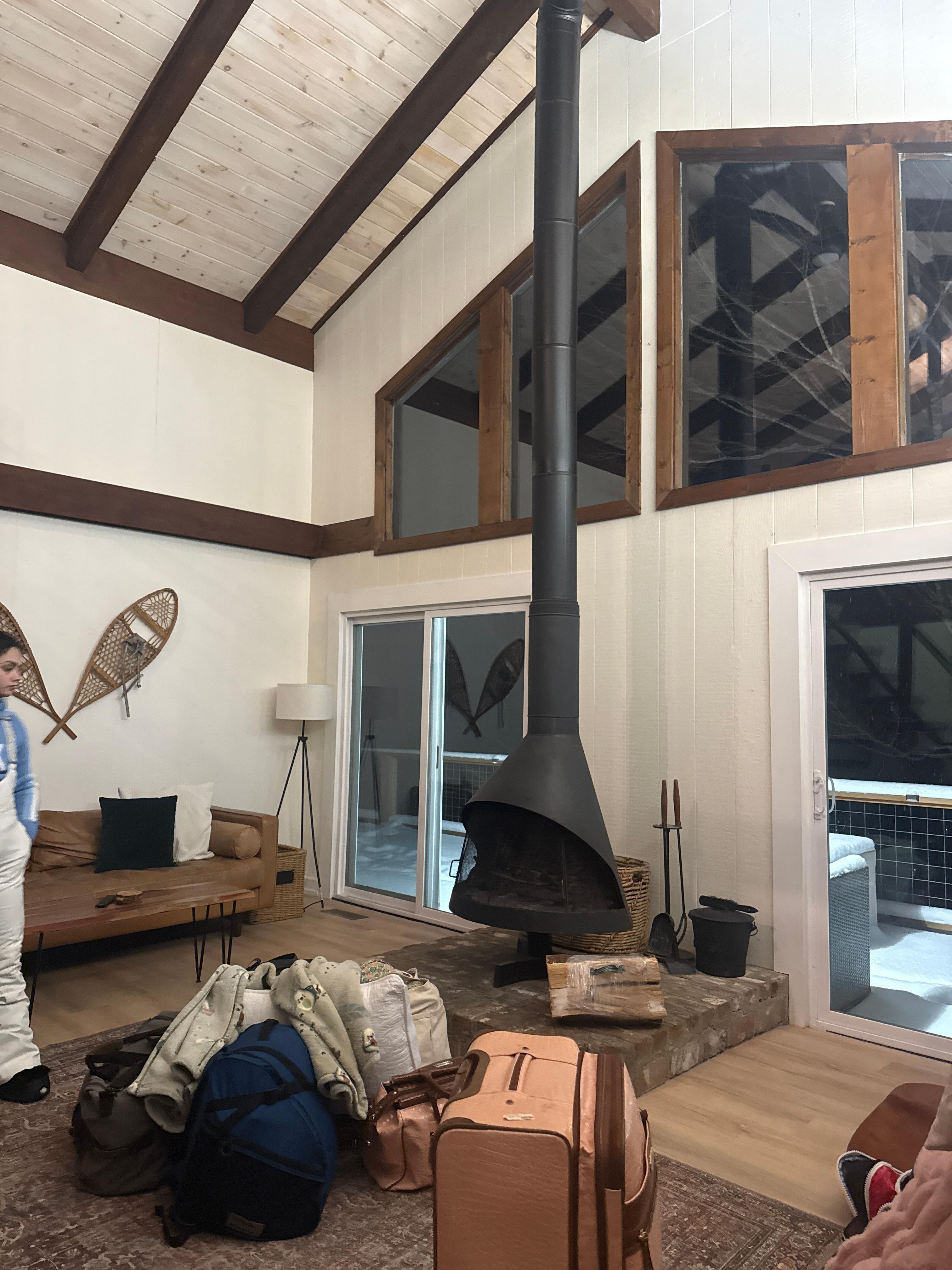 At the heart of the living room is a vintage malm wood-burning fireplace, adding style, warmth, and a nostalgic touch to your evenings. Curl up with a book, play a board game, or spin a classic album on the retro record player. The open-concept layout makes it easy to stay connected while cooking, dining, or relaxing.