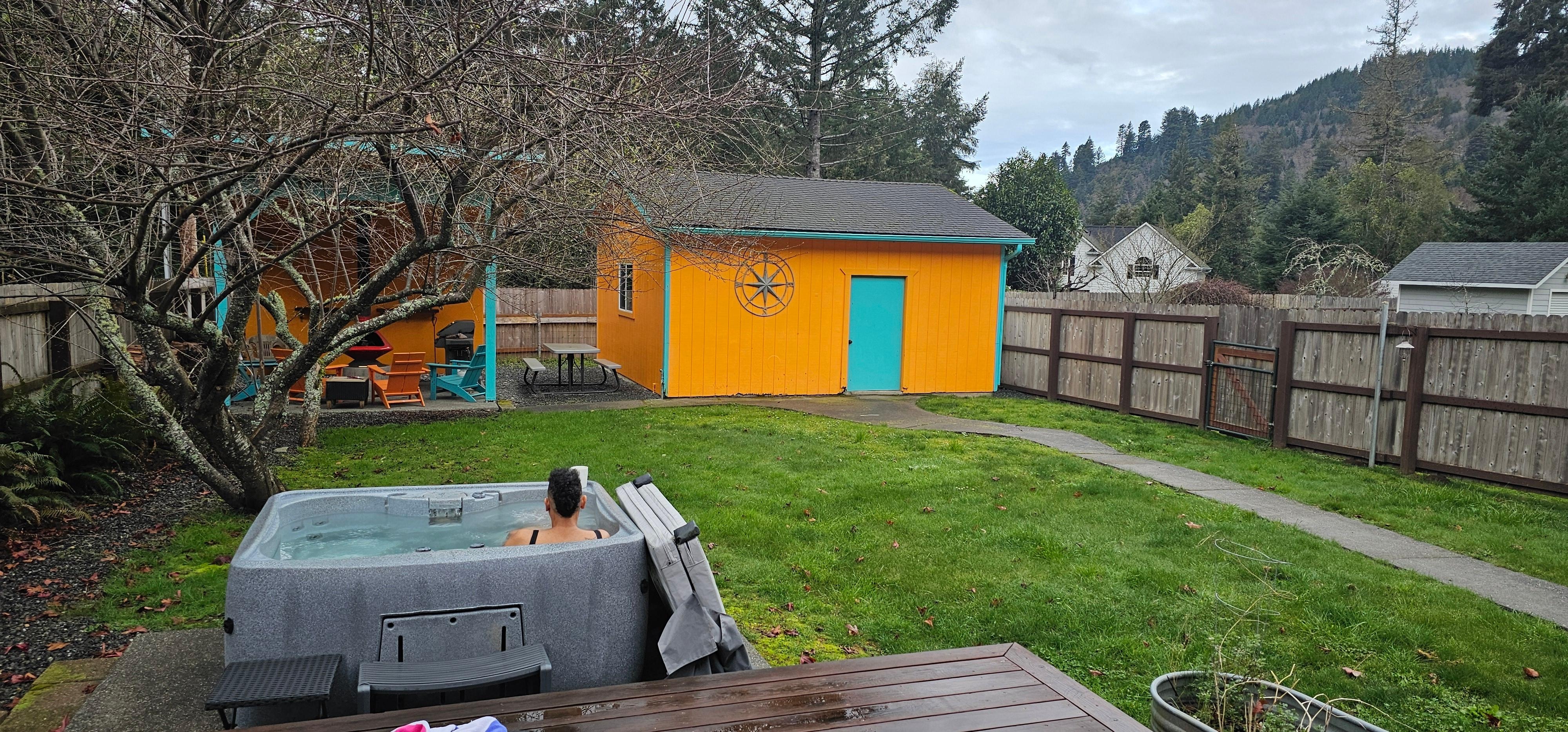 Where do I start? We were greeted with a basket with s'more supplies and a fire already set up and just needed us to light it. House was immaculate, and plenty of good quality linens. Towels for the hot tub and for the shower which was hot, which is a relief, since I hate running out of towels and using same ones for hot tub. Kitchen was shocked with all appliances, dishes, pots, pans, coffee maker was a single cup and full pot combo so bring your favorite coffee. We picked oranges and lemons in the front yard for our cocktails enjoyed by the fire pit, did I mention the wood? They left us enough wood to last for days. Along with fire starters and such! Water in both bathrooms was hot. Wifi was strong and easy to get on. It was too cold to use the stuff in garage but when I come back I am definitely using the bikes, wagon, kayak, and beach equipment available. And they had a pack and play and some sort of high chair available. And board games in the cabinet. The whole house was available, no weird locked rooms. We felt welcome and would definitely book again. Our host recommended two places to eat in town -both of them spot on and one I watched over 50 plus seals and sea lions while I enjoyed a very good fish and chips! One last thing I really liked was the local maps, books and local spots, all in the welcome basket which in the Redwood Forest was a game changer for us. Thank you for excellent time. We will be back!