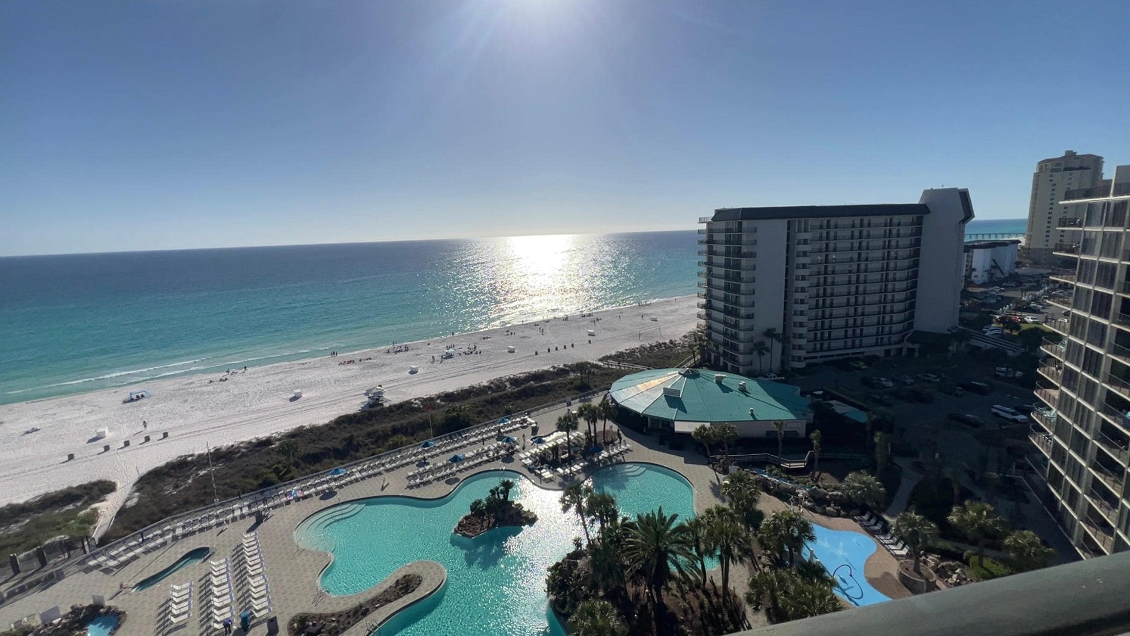 Edgewater Tower I #1203 at Edgewater Beach & Golf Resort offers resort-style amenities, including 11 pools (many heated), hot tubs, tennis and pickleball courts, a fitness center, and a seasonal tram to the beach.