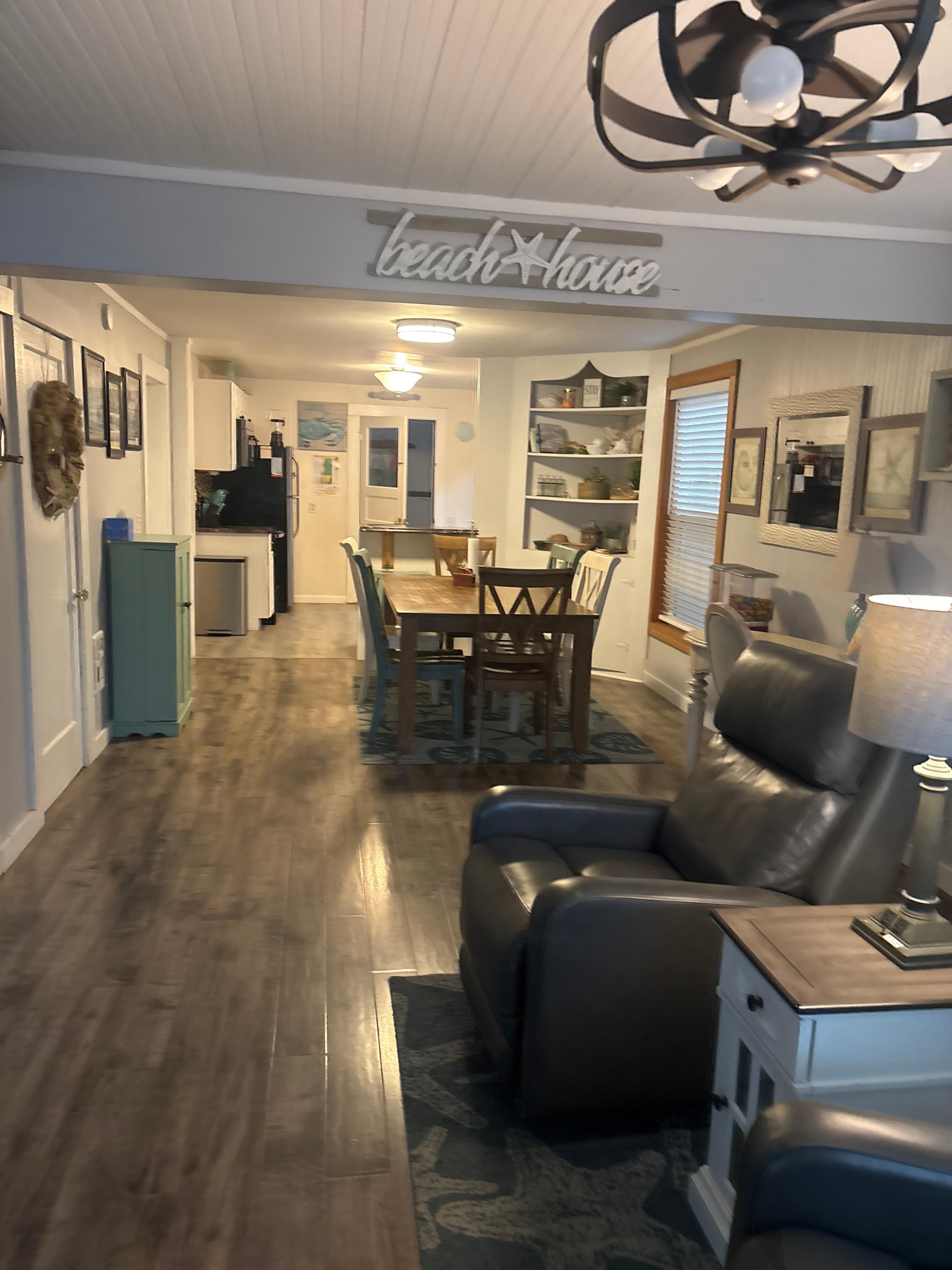 The modern kitchen is well-stocked with stainless steel appliances and gadgets for meal preparation. Here you'll have a refrigerator, stovetop/oven, dishwasher, toaster, and even a coffee grinder. Pick up some fresh seafood while out and about and you'll be able to make a memorable vacation dinner your whole group will enjoy sitting down to. Out on the deck, there's a gas grill, giving you even more cooking options.