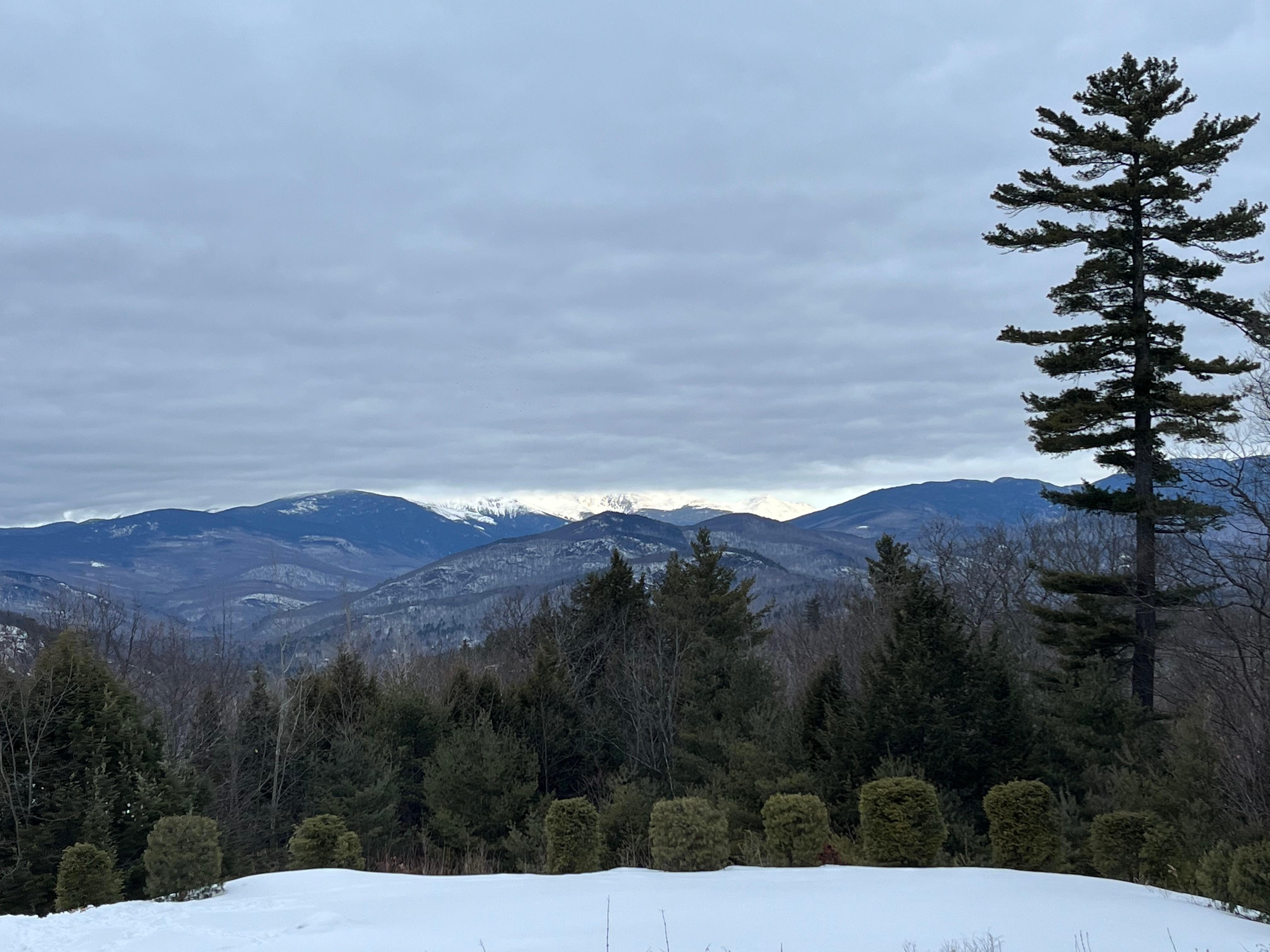 Main Floor - Two private bedrooms each with their own on-suite bath. One king bed & large screen TV, One queen bed. Fully stocked kitchen with service for 10, large dining room table. Wood stove and cozy seating area. Balcony overlooking Mt Washington.