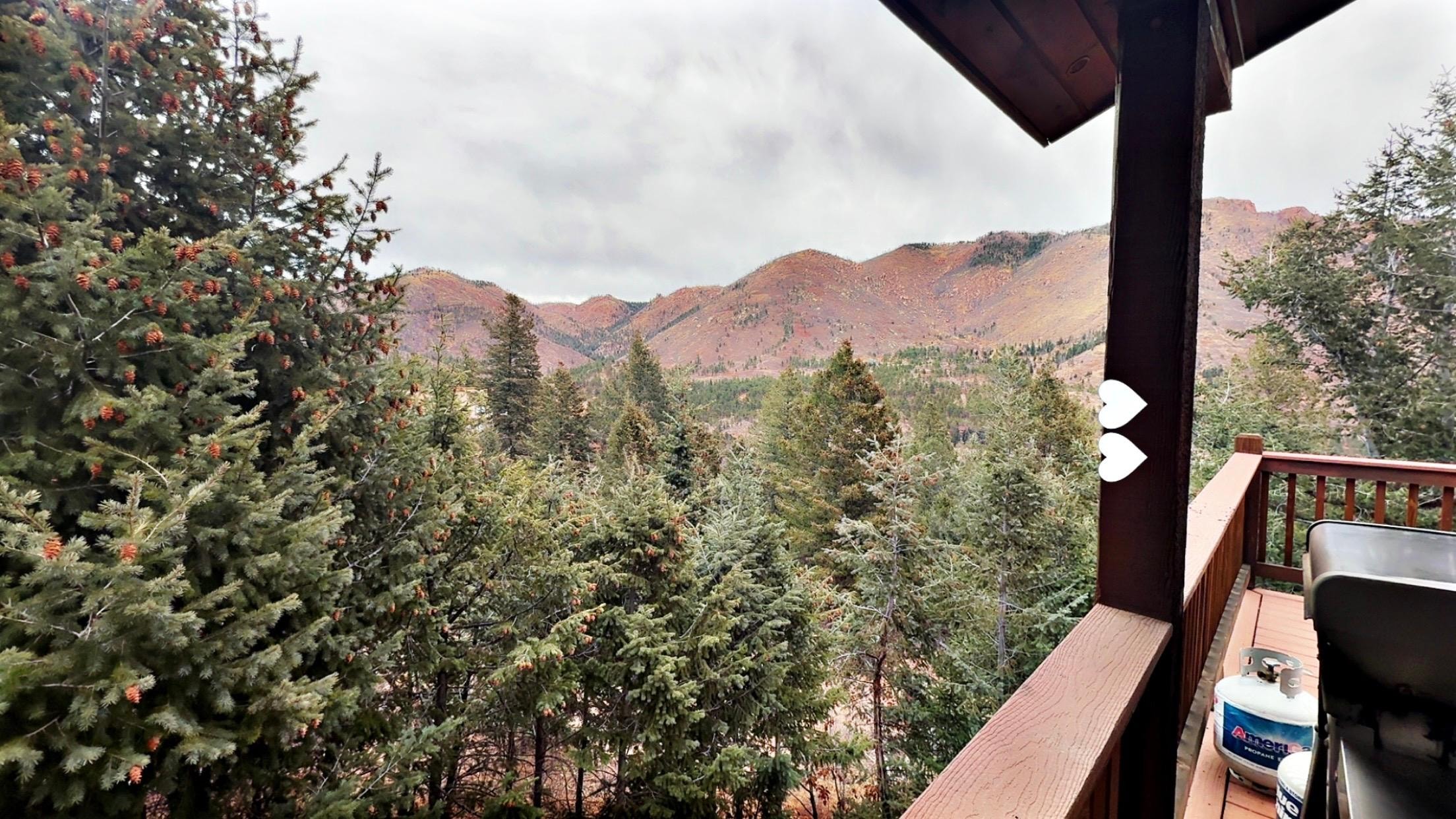 Rental was up the mountain a short way but once you got there what a nice retreat. Very private and serene with a great view. My wife and I decided to stock up on food and beverages and just eat dinner in every night since it was so nice and not have to drive back into town (Mantitou or Colorado Springs). Nice views in the morning and evening!