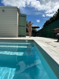 Outside we have secure parking for at least 3 cars, a large tiled patio area for alfresco dining. The patio extends around the swimming pool and we have 10 sun loungers around the pool. The private, 8m x 4m, pool is heated and is available from 1st of May to the end of September. It has a level floor approx. 1250mm deep making it ideal for playing games.