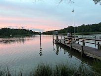 Located on a very secluded 15 acre property on the Severn River, directly across from the historic Inn at Warner Hall. Close to the Historic Triangle, (Yorktown, Jamestown, Colonial Williamsburg), the amusement parks, (Busch Gardens and Water Country), and the Chesapeake Bay. Located on the quiet Severn River, you can kayak, canoe, hike, cook out, nature watch, fish and sit on the pier and enjoy the breathtaking sunrises. Jameslin is the perfect retreat if you're seeking solitude, while having quick and easy access to the area's many attractions. Enjoy the cozy fireplace, fully equipped kitchen, relax on the screened in porch, or enjoy the tiki bar area with lighted pond and fountain.