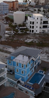 The entire house sleeps up to 12 people. There are STEPS going up to main levels. This is great for multiple families, each family can have their private area. Due to being located on the North end of the island, you can avoid long a long wait in traffic after getting off the bridge onto Estero Blvd. Another plus is we are located on the the North end of the island. The the busy times of year, it can take a very long time to get down to the south end of island by car.