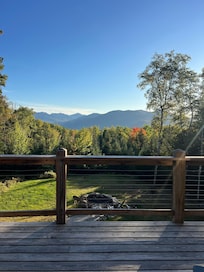 As you arrive catch a glimpse of the the magnificent views, spectacular decks, hot tub, open fire pit, outdoor shower (seasonal) and sprawling yard and then come inside to the home that was designed for the serious Adirondack vacationer. The house sleeps 12 people, and features 4 bedrooms and 3.5 bathrooms. You will enjoy a large open floor plan, including a chef's kitchen and large dining area flanked by a great room with vaulted ceilings, wood-burning stove, and all new stylish furniture. A simply wonderful space for gathering the family and friends. When it is time to rest you will get cozy in one of our 3 king bedrooms or specially designed "Young Adults/Kids" get away bunk/TV room. And don't forget the bathrooms! Each outfitted with rain showers, long vanities and double sinks, everyone will feel like they are on their own private vacation.