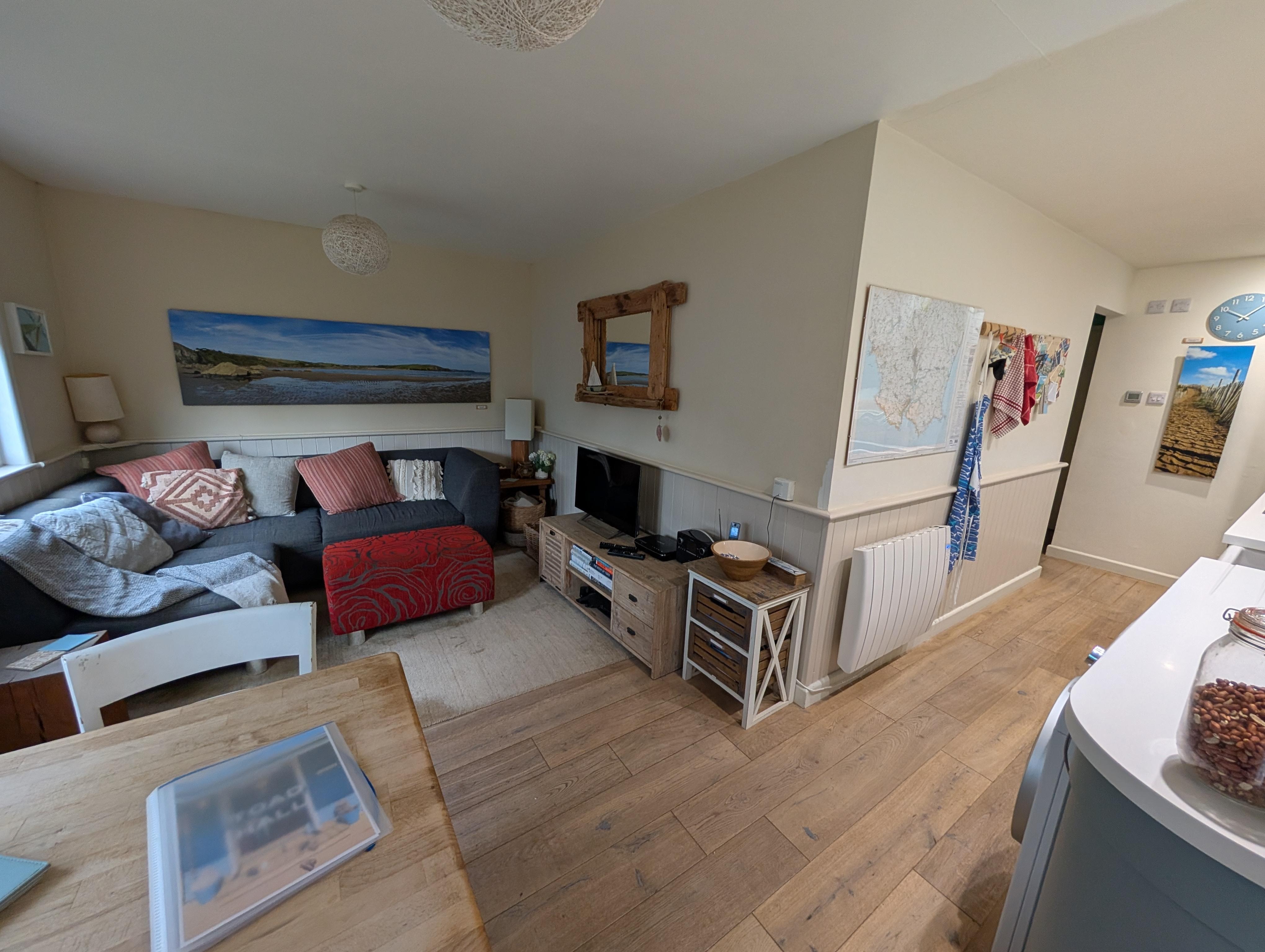 It sleeps 4 in a double and twin bedrooms (DVD player in twin room), and has a shower room, kitchen area (both of which were completely re-fitted in December 2019) with oven and induction hob, dishwasher, washer/dryer, microwave and fridge with freezer compartment and a sitting/dining area with satellite TV/DVD, PS3, I-Pod/phone/pad dock and a selection of books, DVD's and games. There are electric wall-panel heaters in all rooms, underfloor heating in Bathroom and plinth heater in Kitchen.