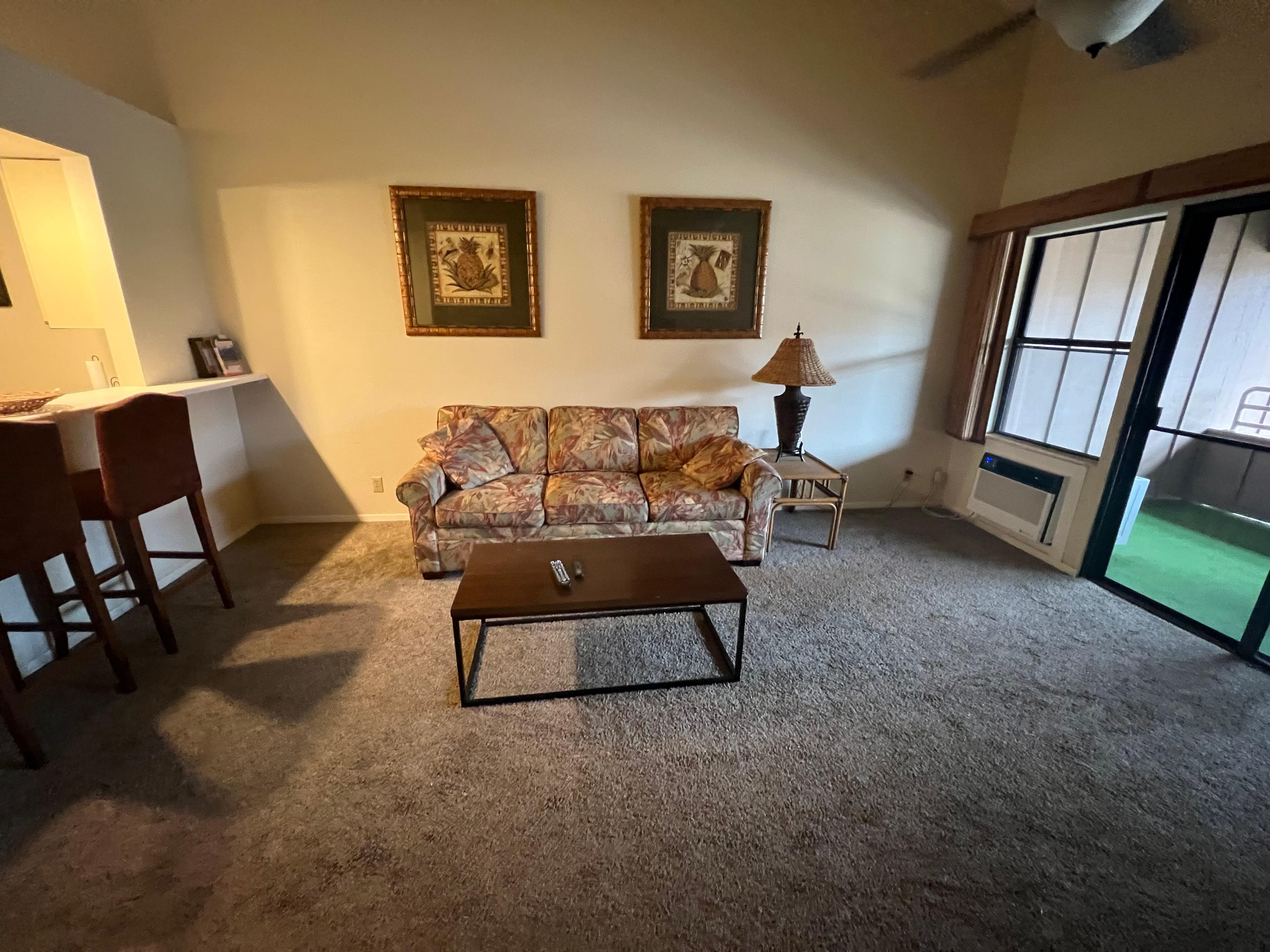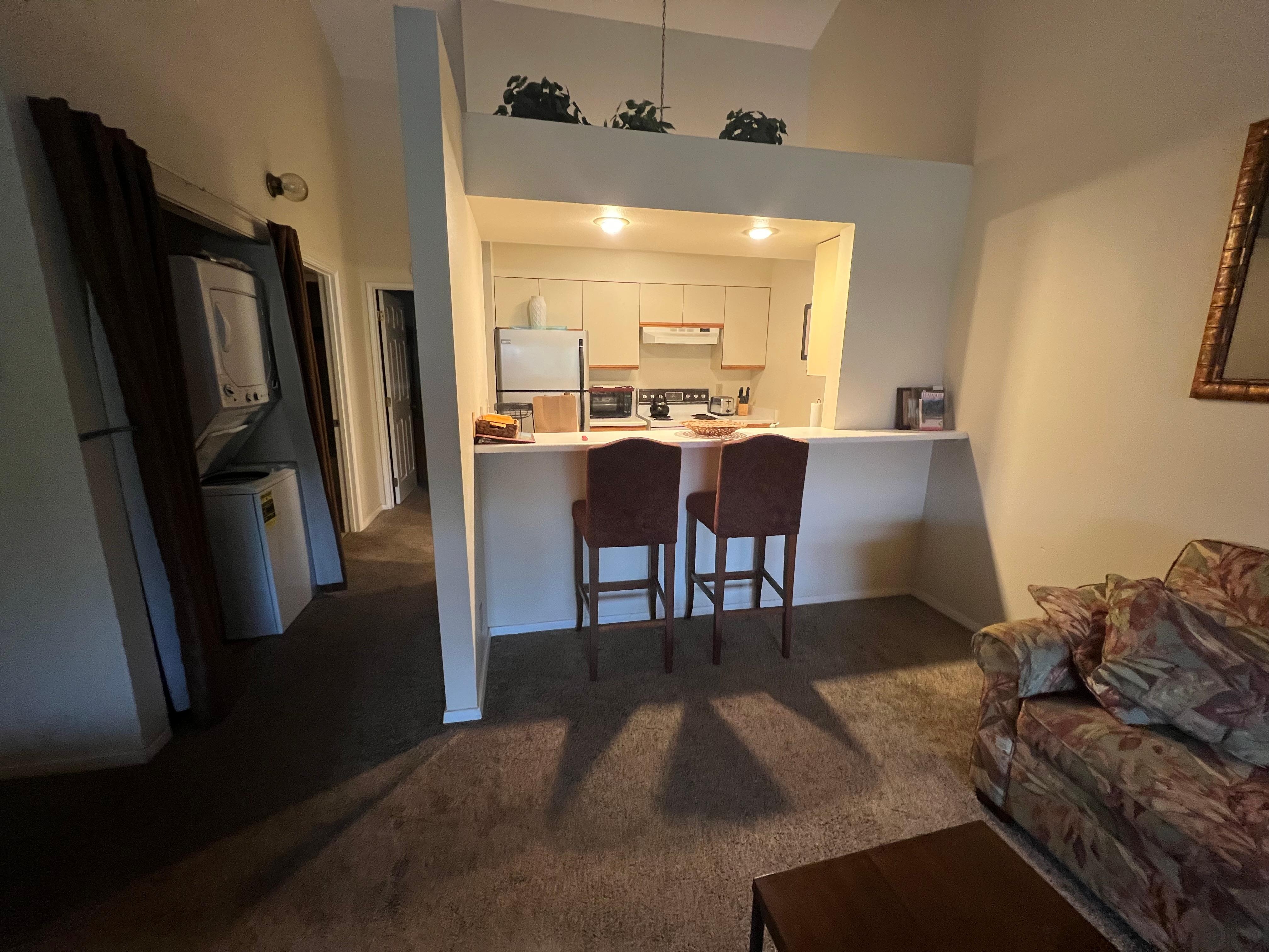 Kihei Bay Vista is a low rise island style complex across from a long sandy stretch of beach. The beach is perfect for walks, sunset watching or just relaxing. At certain times it is a popular spot to watch the kite surfers ride the waves and sail through the air! The kitchen is well equipped and set up for easy meal preparation. The bedroom has vaulted ceilings and a queen size bed. The sleeper sofa in the living area has a memory foam mattress. There is a flat panel TV and free WiFi. The bathroom was remodeled in 2018. The beautiful pool area is perfect for relaxing in the tropical sunshine. There is an A/C unit in the living room and a washer/dryer in the apartment. Kihei Bay Vista is close to Kihei's shopping centers and restaurants.