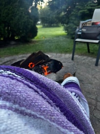 Backyard has a 12 ft. round brick paver patio with a granite firepit for your enjoyment. Bring your own wood. City water. Everything provided. You will make so many memories here.
