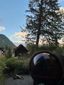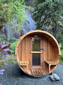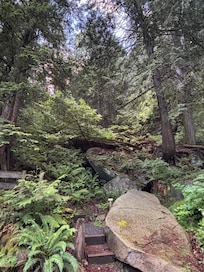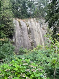 Featuring a 150’ shear rock wall, surrounded by mature and old growth spruce fir and cedar trees. Landscaped pathways wind through the property and by our outdoor picnic-recreation area.
