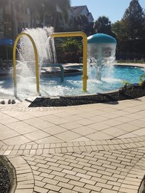 Runaway Beach Club Resort is a luxury family resort located right in the center of Florida's tourist area, only 3 miles from Walt Disney World Resort. Tropically landscaped, this gated community consists of charming two-story pastel Key West-style villas surrounding a central fountained lagoon. Two heated pools and hot tub provide swimming and sunning options for the whole family --- a South Beach themed adult pool plus a fun, colorful child-friendly pool with water features and zero-depth entry. Accented by flickering Hawaiian-style torches and gracious palm trees, the extensive deck area surrounds both pools and overlooks the beautifully landscaped lagoon. Plenty of comfortable lounge chairs and umbrella tables are provided throughout the deck area. The resort’s clubhouse contains a modern fitness center, indoor basketball court (fee applies), and a TV lounge area with public computer. Free Wi-Fi throughout the complex. There is NO additional Daily Resort Access Fee.