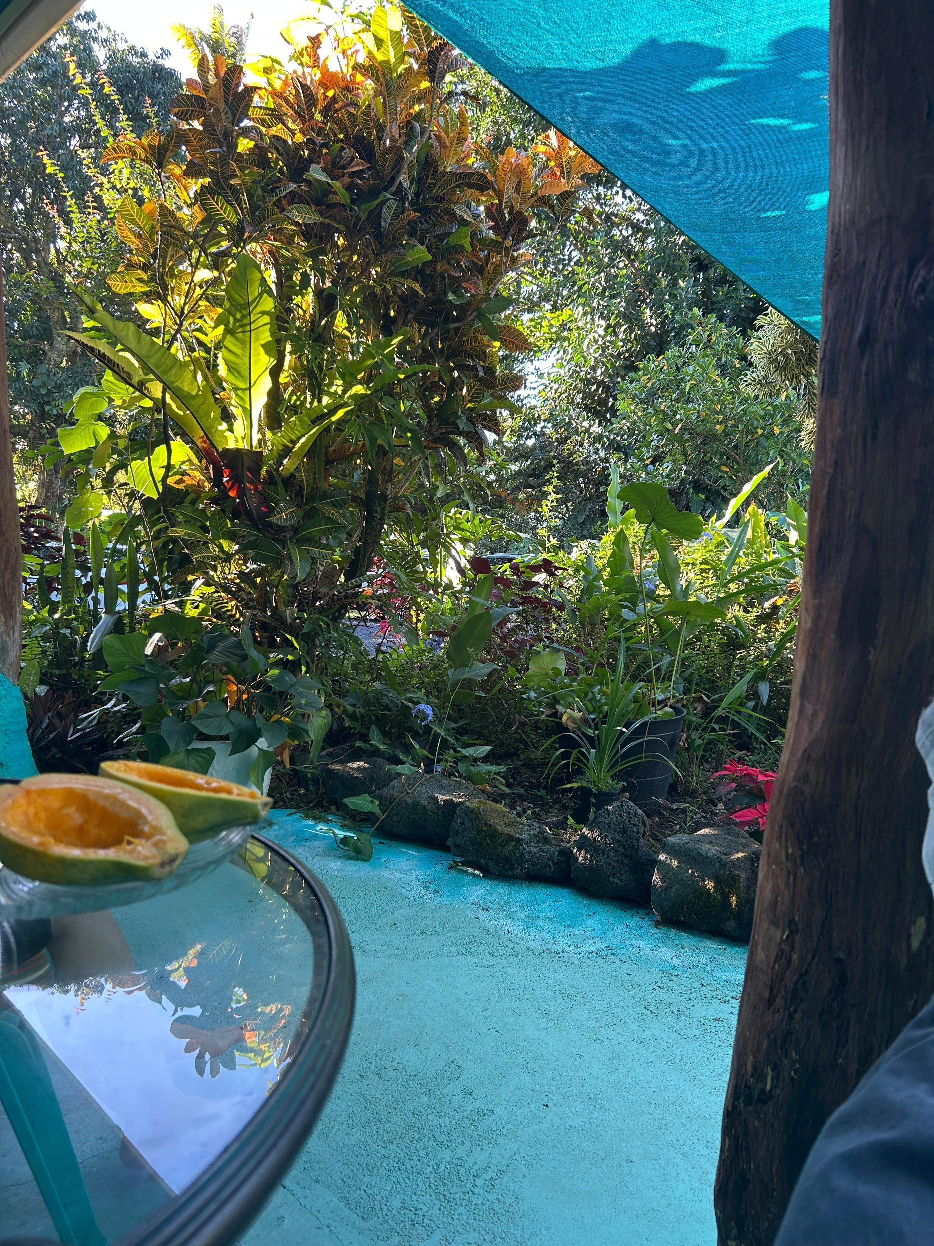 A piece of paradise to call home while you are on the Big Island. Go to sleep with frogs chirping and stars so bright you could almost touch them. Wake up to birds singing and complimentary Hawaiian coffee . Pamper yourself, shower in our collected rainwater.