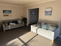 Open the sliding doors from the living room to create a fantastic indoor-outdoor experience. Picture sitting back with a cuppa as the kids and family dog enjoy playing on the fully fenced lawn. A large patio offers an alfresco dining space for those classic Kiwi summer feasts. The kitchen is equipped with everything you’ll need to prepare tasty holiday meals to enjoy around the dining table offering the perfect spot for a casual breakfast with the family before a big day of fun in the sun!