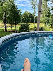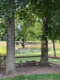 - NOTE: All areas of the property beyond the private pool, playhouse, and fenced yard are shared with other guests. This includes the fishing pond and walking trails