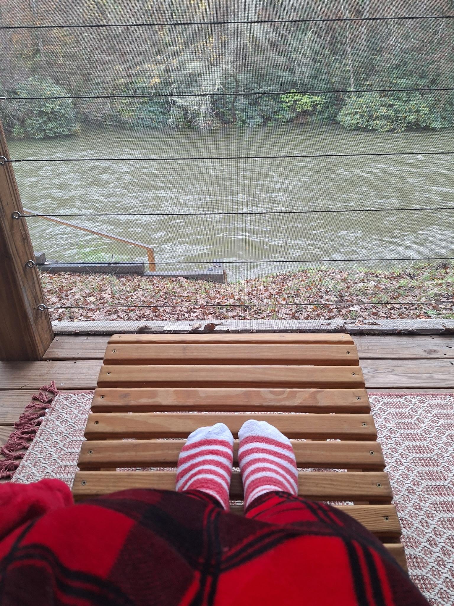 Amazing back porch overlooking the river! Every detail of the home was well thought out. Lots of cozy blankets for sitting in front of the fire. Loved the âLetâs get toastedâ basket. Great touch! And only needed to step out the front door for a beautiful walk in nature. A truly exceptional home.