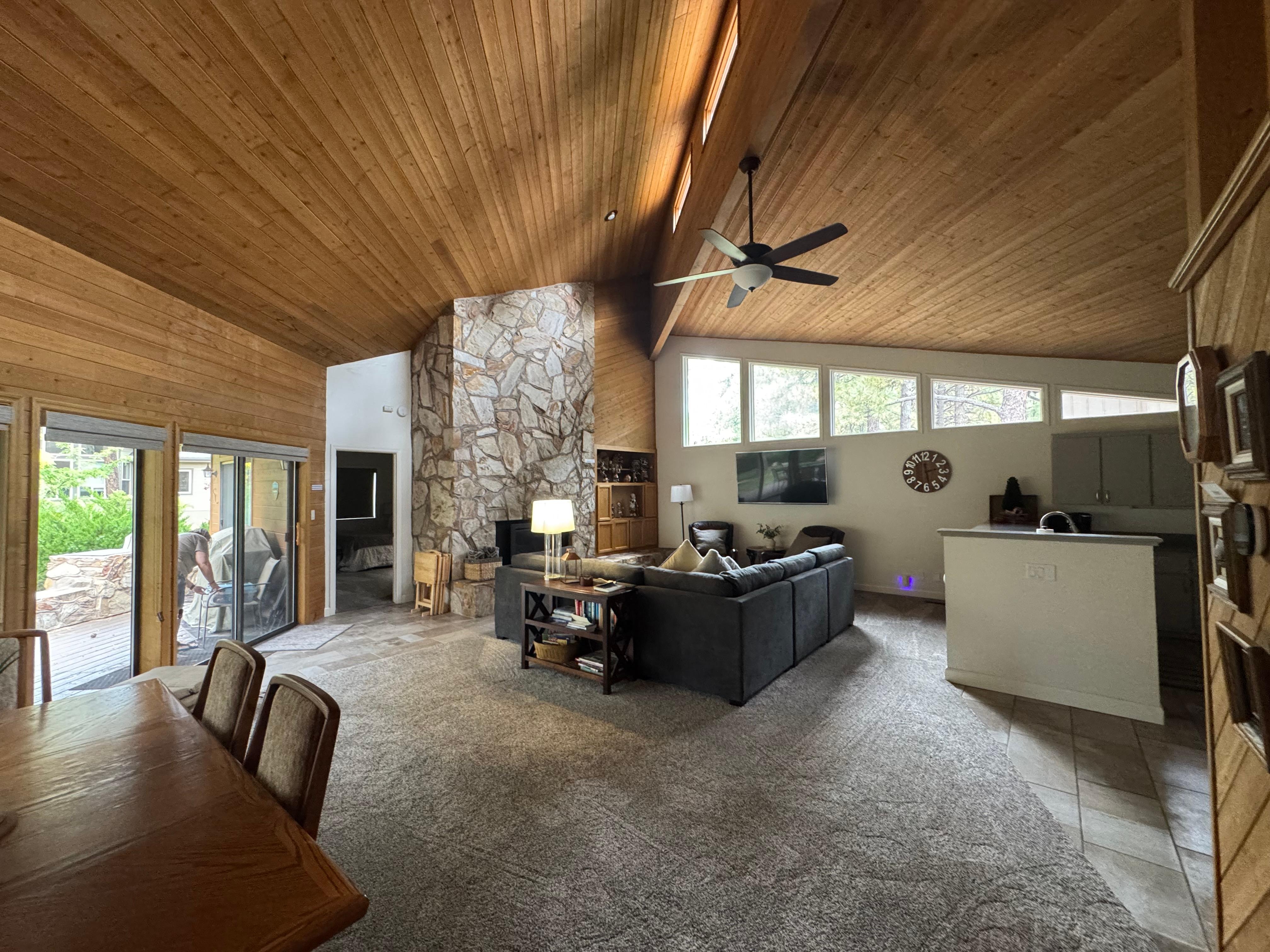 Rymligt stort rum har flera takfönster för naturligt ljus med svÀvande 18 fot takbjÀlkar, 65-tums smart plattskÀrms-TV pÄ full-motion mount och brÀdspel för hela familjen att njuta av. Alla nya möbler i stort rum inkluderar drottning bÀddsoffa super bekvÀmt med memory foam madrass, kÀrlek sÀte och flera bekvÀma stolar.