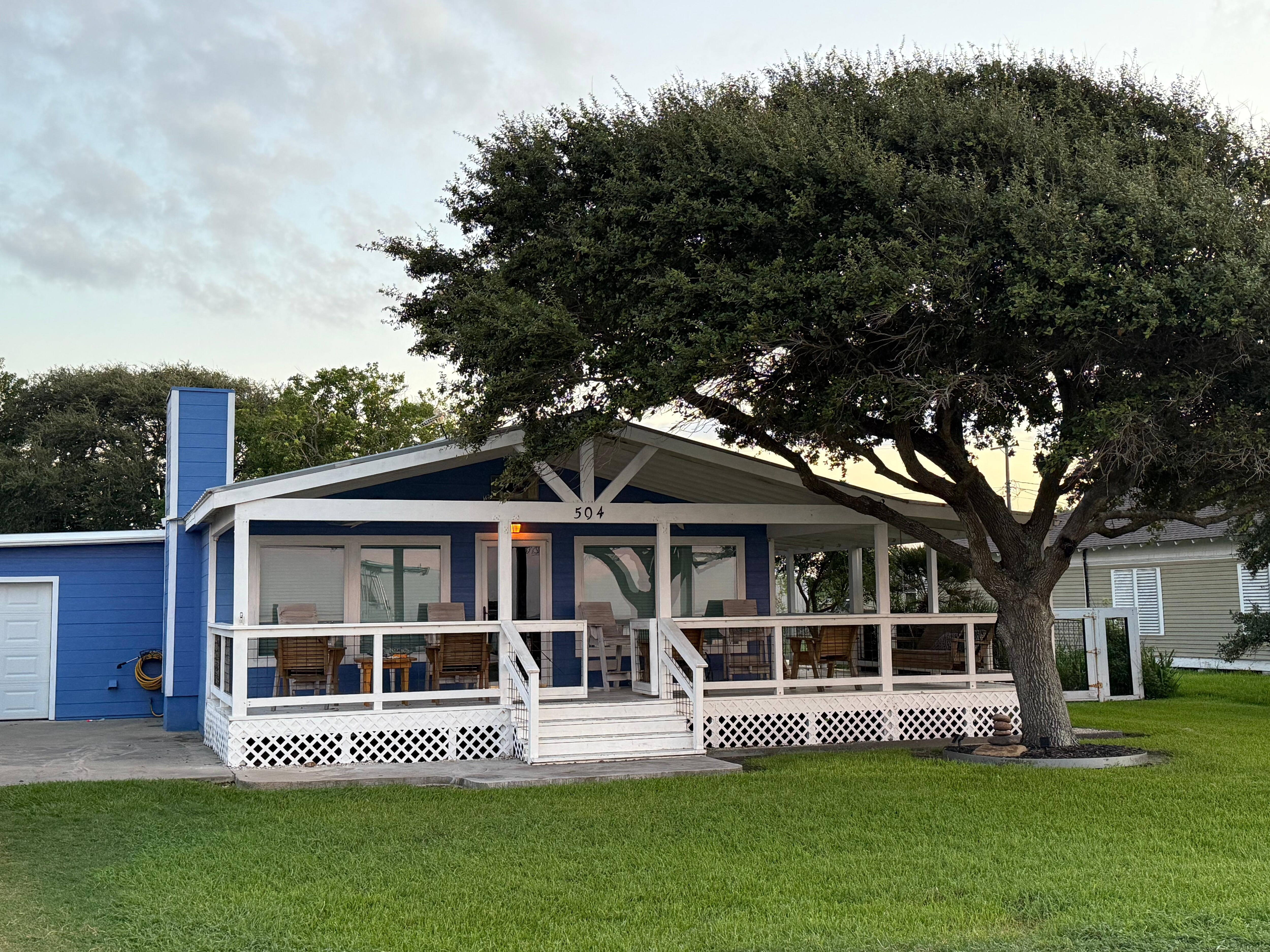 VÄr söta kuststuga, vi har kallat Flying Fish, ligger perfekt vid San Antonio Bay i Seadrift, Texas. GÄ ut genom ytterdörren och njut av ditt morgonkaffe, sitter pÄ den bÀsta verandan med den bÀsta utsikten i omrÄdet. Se pelikanerna mata och niser spela frÄn din egen privata oas. Du kan gÄ ner till den upplysta fiskebryggan nÀr du vill och kasta en linje in.
